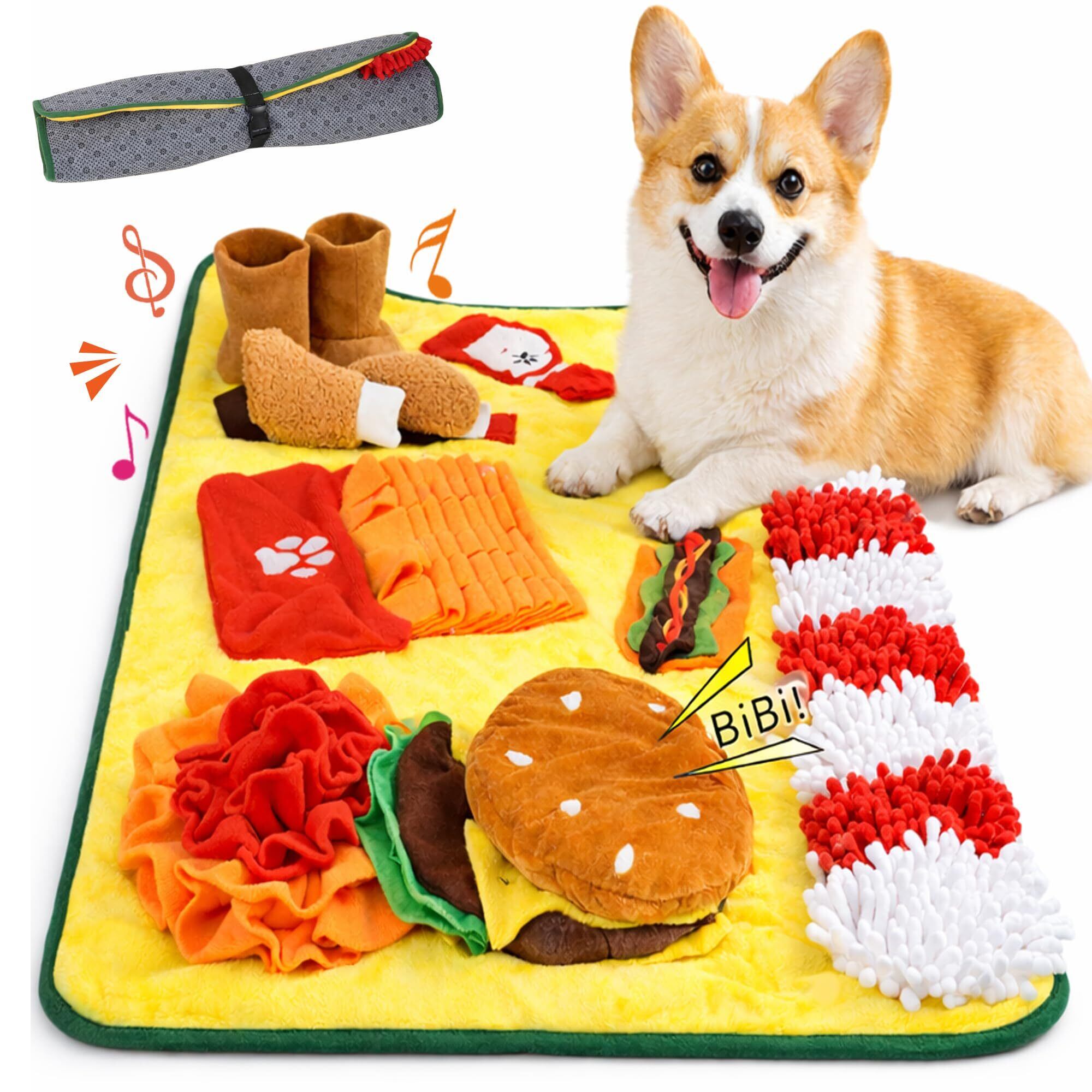 【犬の本能を刺激する訓練毛布】フライドポテト・バーガーなどの可愛いフードモチーフが満載!犬のおやつを隠してノーズワーク遊びができ、嗅覚・集中力・問題解決能力を自然にトレーニング。退屈解消&室内運動にも最適な犬用運動器具です。