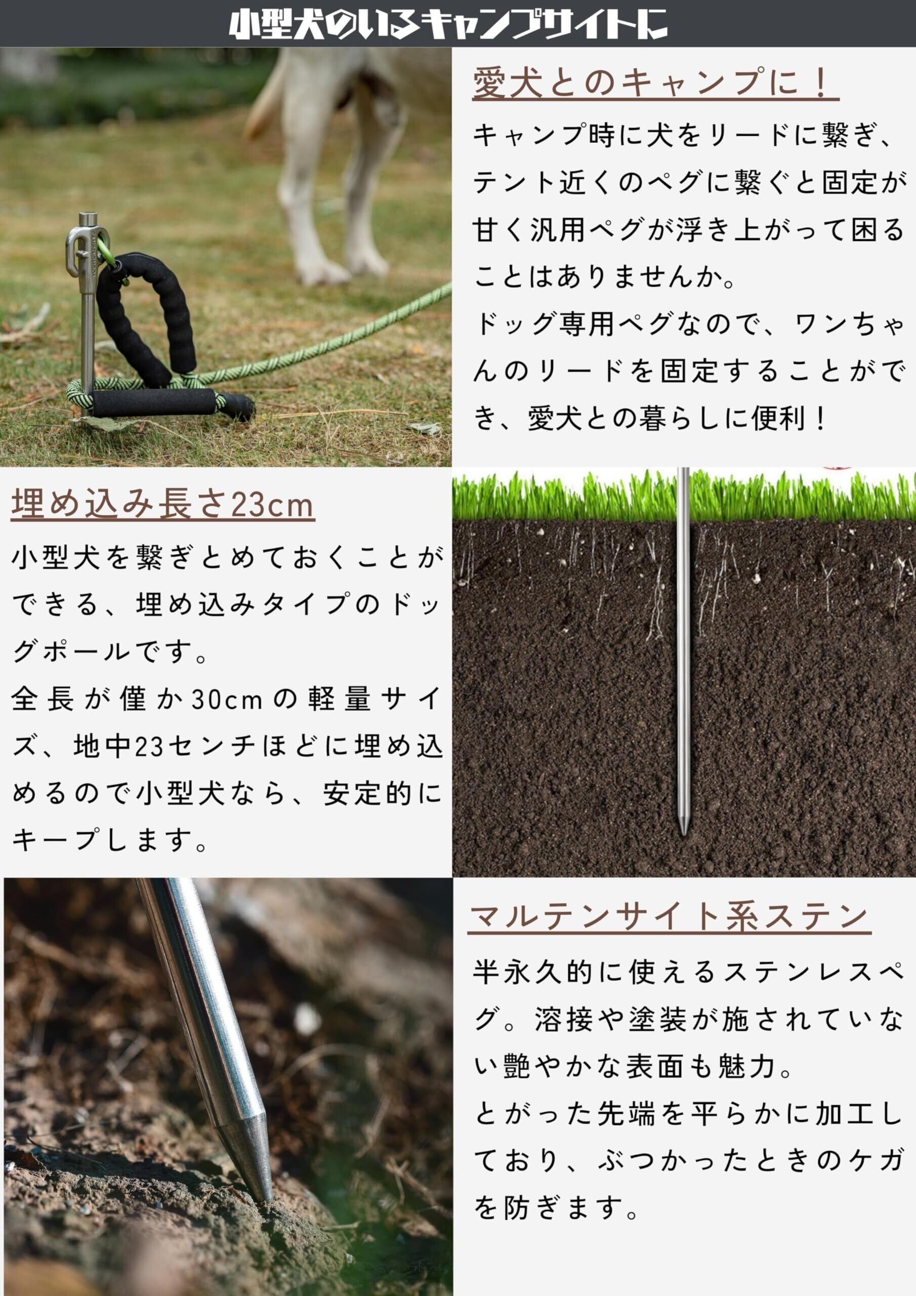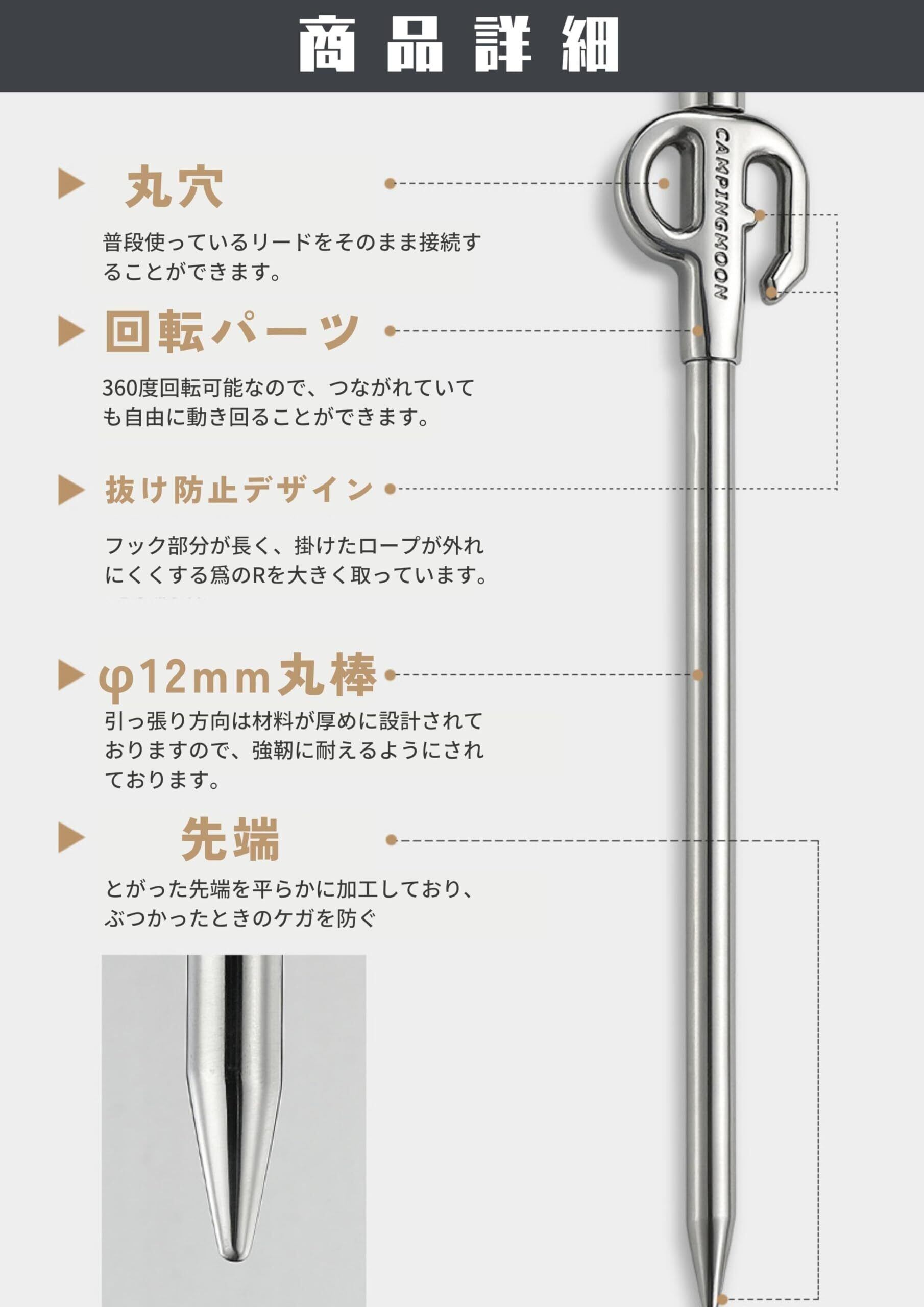 キャンピングムーン(CAMPING MOON) 係留用ポール 係留用ペグ ペット 小型犬用 ステンレス鋼420製 30cm 固い地面にも打ち込める 360度回転 K45-30
