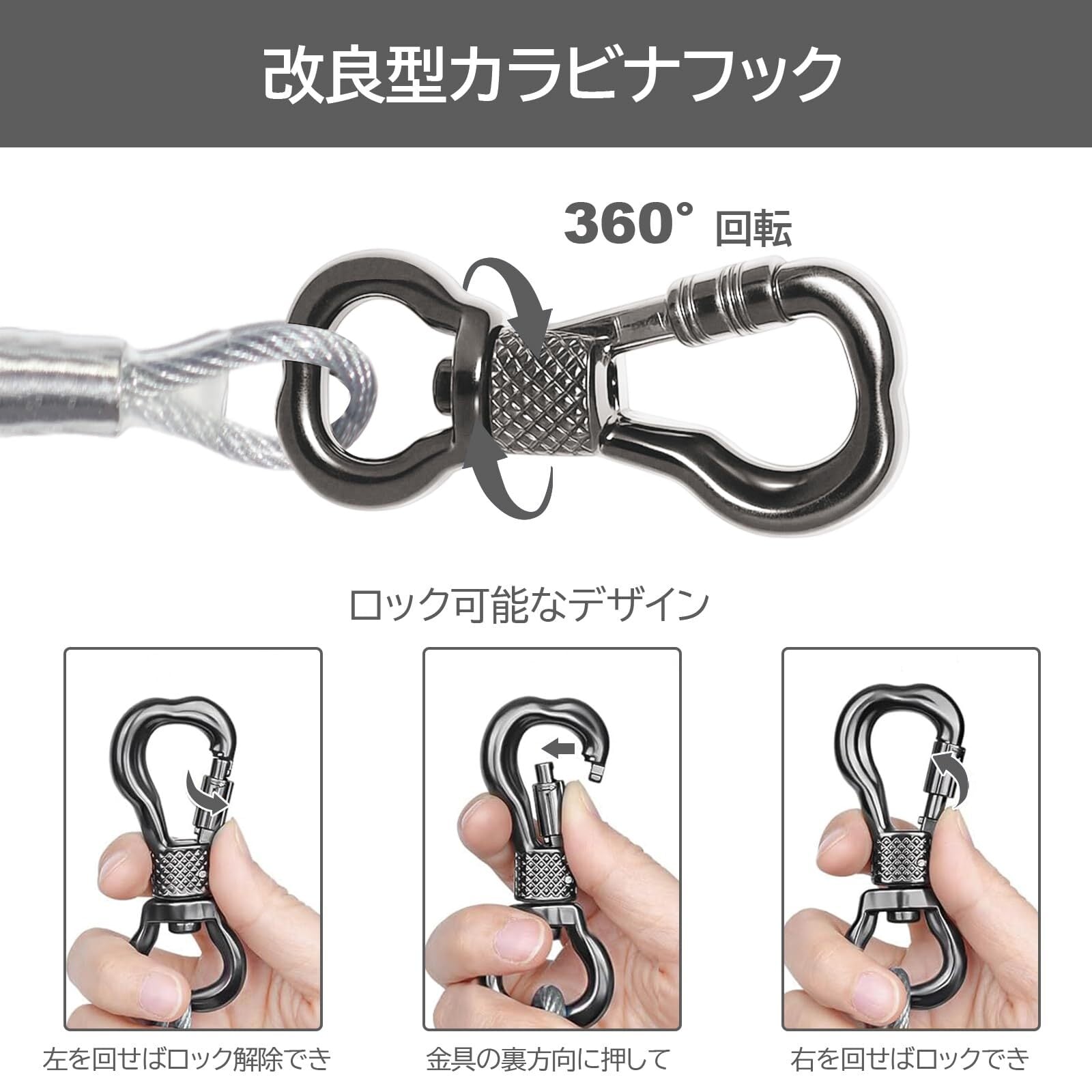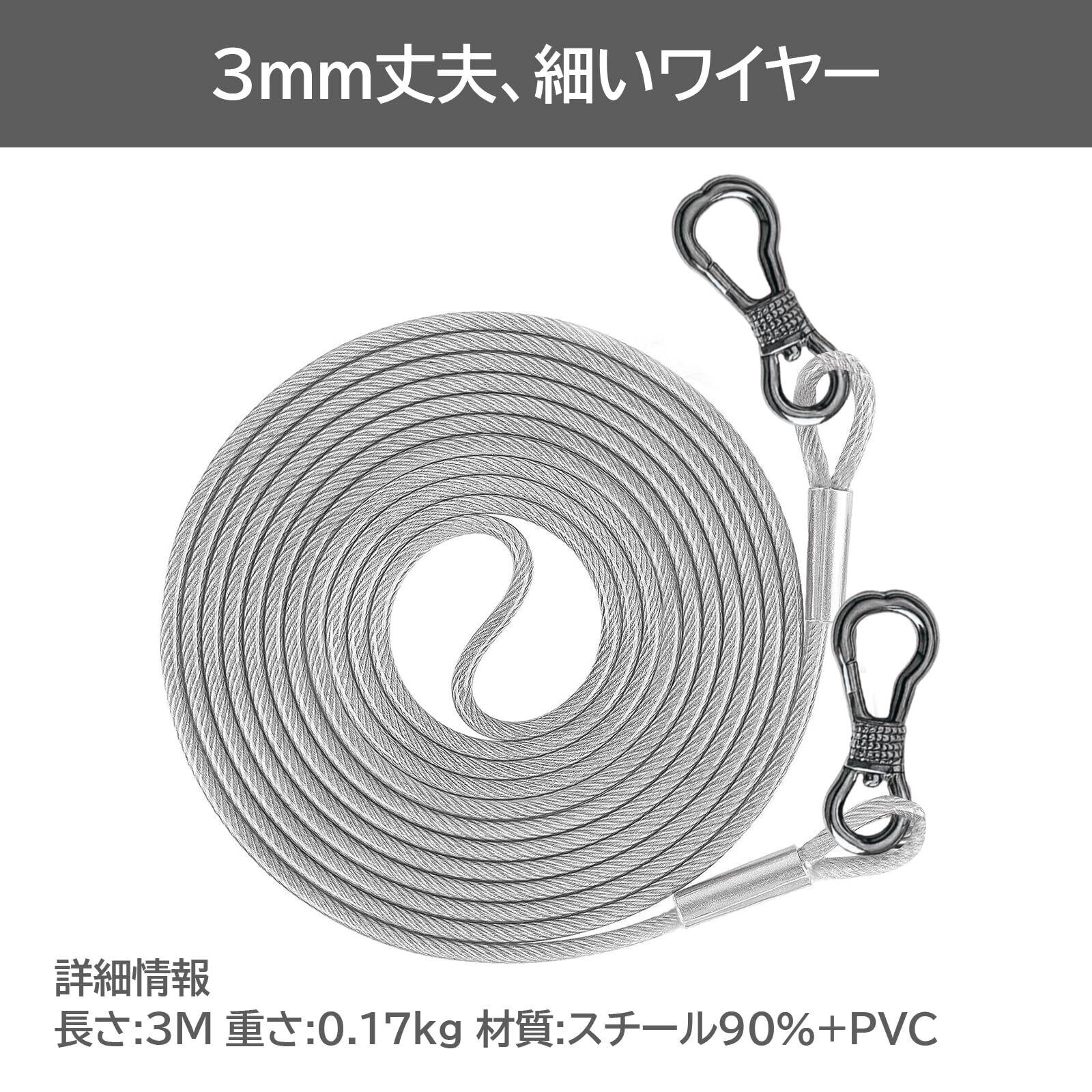ロングリード 長さ3m 直径3mm 犬用ワイヤーリード カラビナロック付き 強力固定 軽量 防水 犬用ワイヤーロープ 繋留器具 小型犬・中型犬・大型犬 ドッグリードは庭、屋外、ハイキング、海岸などの場面に適用できます