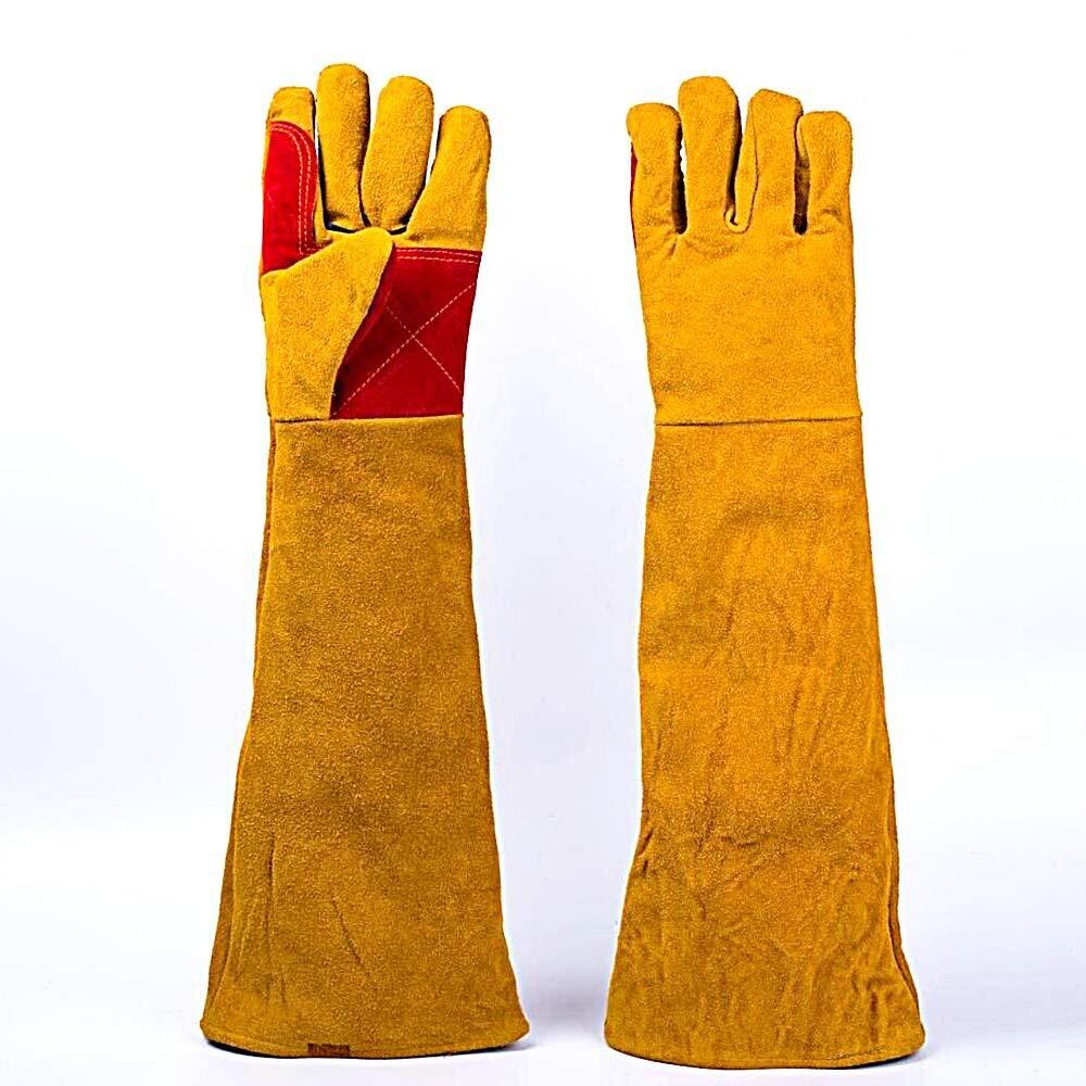 ペットの飼育、調教、トレーニングに適したグローブです。長さ60cmの厚手の牛革製ですので、爪や牙からの引っ掻きや噛みつきから腕全体をしっかり保護できます。