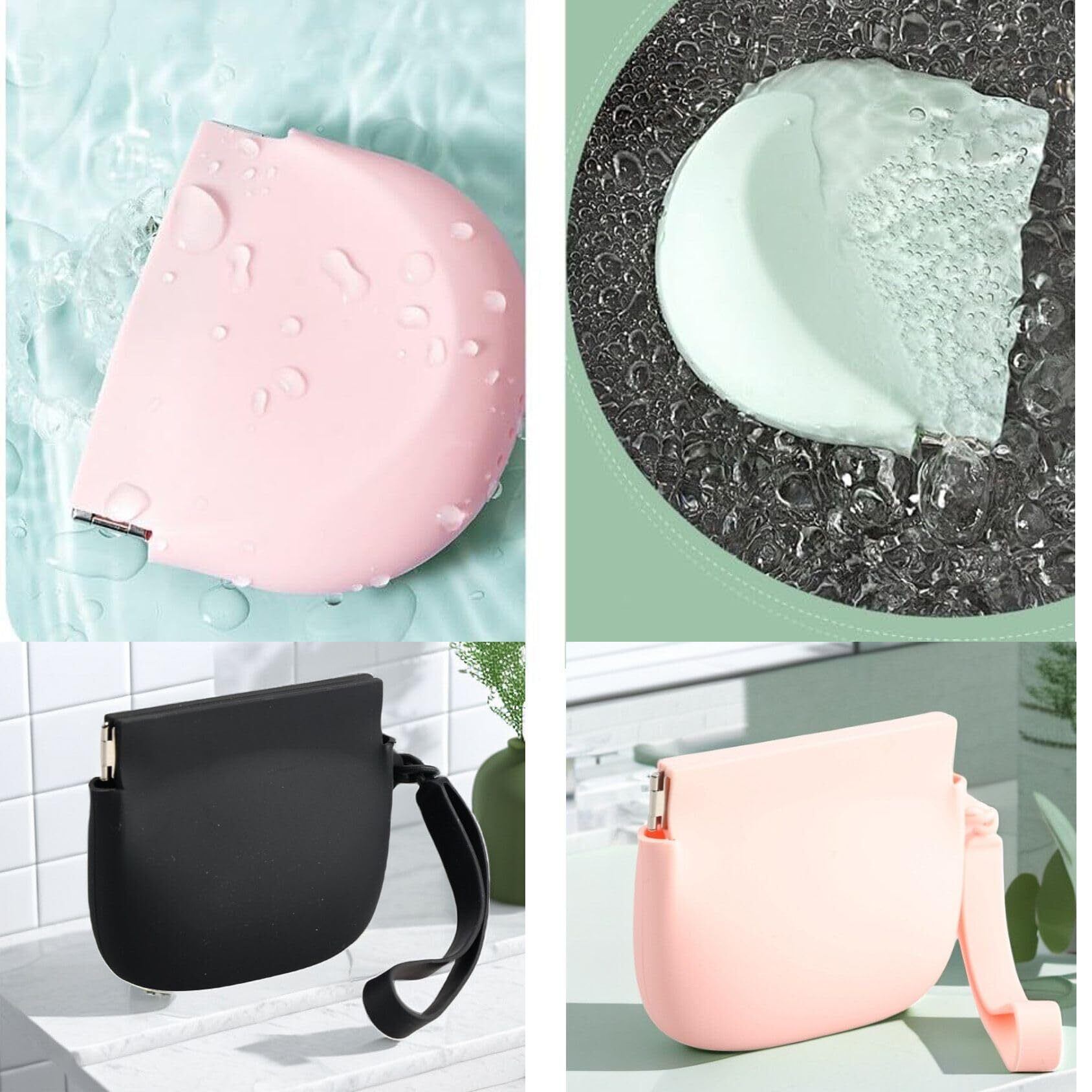 携帯ごみ入れポーチ携帯ゴミ箱 シリコン小銭入れシリコン ゴミ箱 携帯犬用おやつポーチ 洗える小物入れ袋シリコンポーチお散歩 無地防水 自動ロック 取り出しやすい コンパック (ブラック)