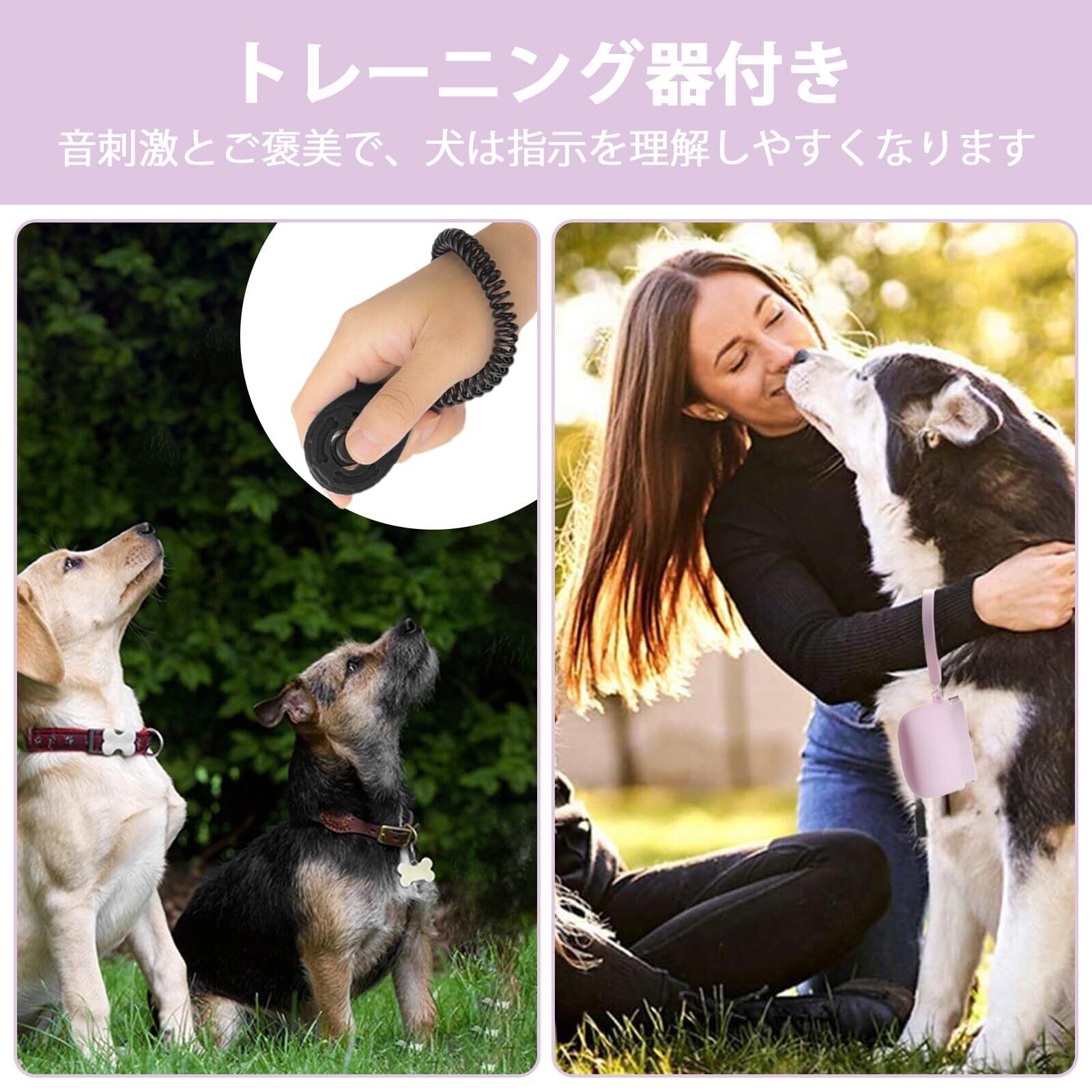 【トレーニングクリッカー付き】 トレーニングや日常のお犬散歩に最適なセット。犬の「おすわり」「まて」「こい」などの指示に従わせる際、タイミングよくご褒美を与えることができます。付属のトレーニングクリッカーは、ボタンを押すだけでクリアな音が鳴り、愛犬のしつけがもっと楽しく、スムーズになります。