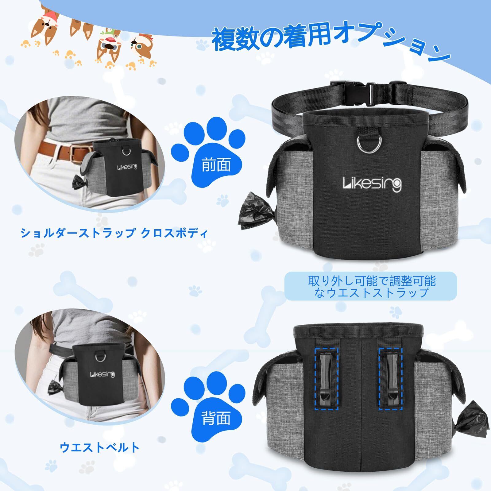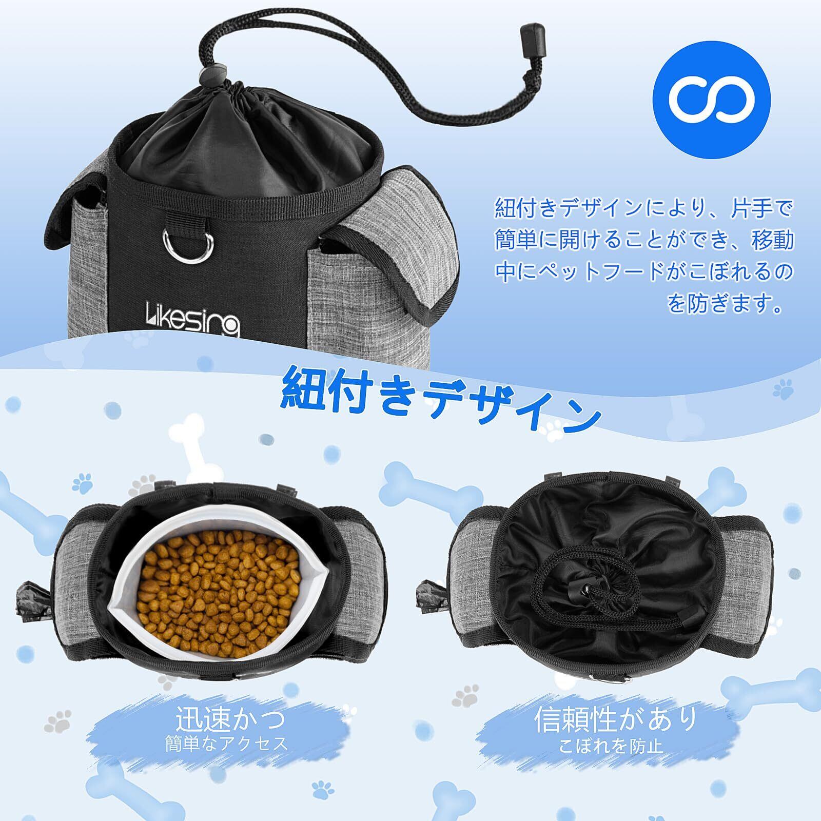 犬 おやつポーチ ドッグトリーツポーチ シリコン製スナックバッグ付き 犬用トレーニングポーチ 交換用カップ1個 訓練バッグ お出かけ用 犬の訓練や散歩 軽量 強力なマグネット開閉 2通りの着用方法付きウォーキングバッグ (Black Grey-1)