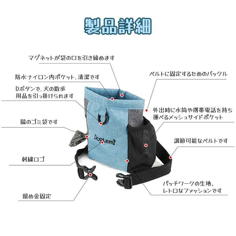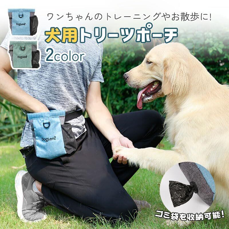 【新着商品】【クレバーレンチ】お散歩 バッグ 犬 散歩 ポーチ 犬散歩用 ウエストポーチ ショルダーバッグ トリーツポーチ ペットボトル仕切り付き 軽量 調節可能 (ブルー)