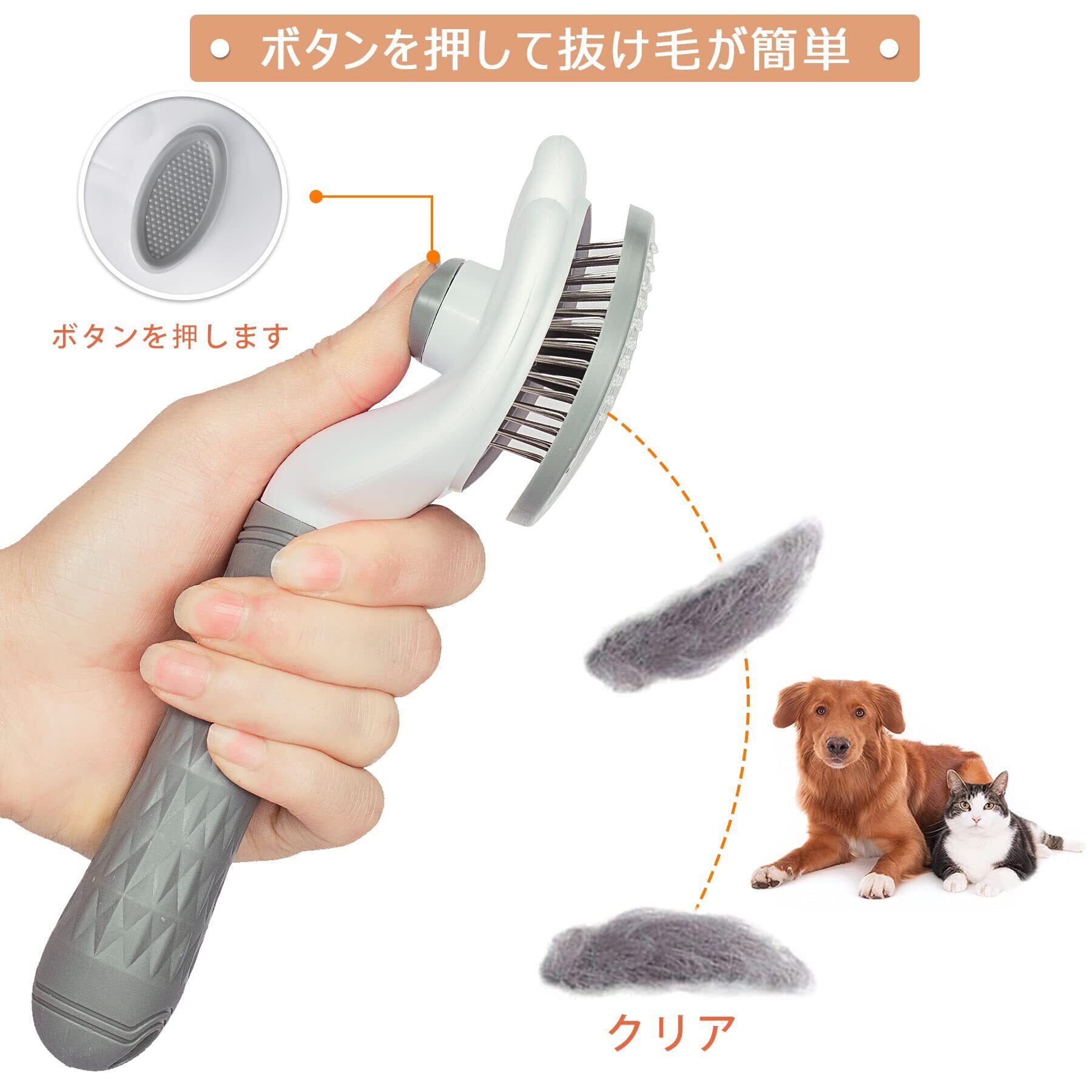 【正規品】SanMori ペット用 痛くない ヒーリングブラシ スリッカーブラシ 長毛・短毛種 くし ワンマッサージしながら抜け毛除去 ボタンを押して抜け毛が簡単に取れる ペットグルーミングブラシ 猫・犬兼用(グレー)
