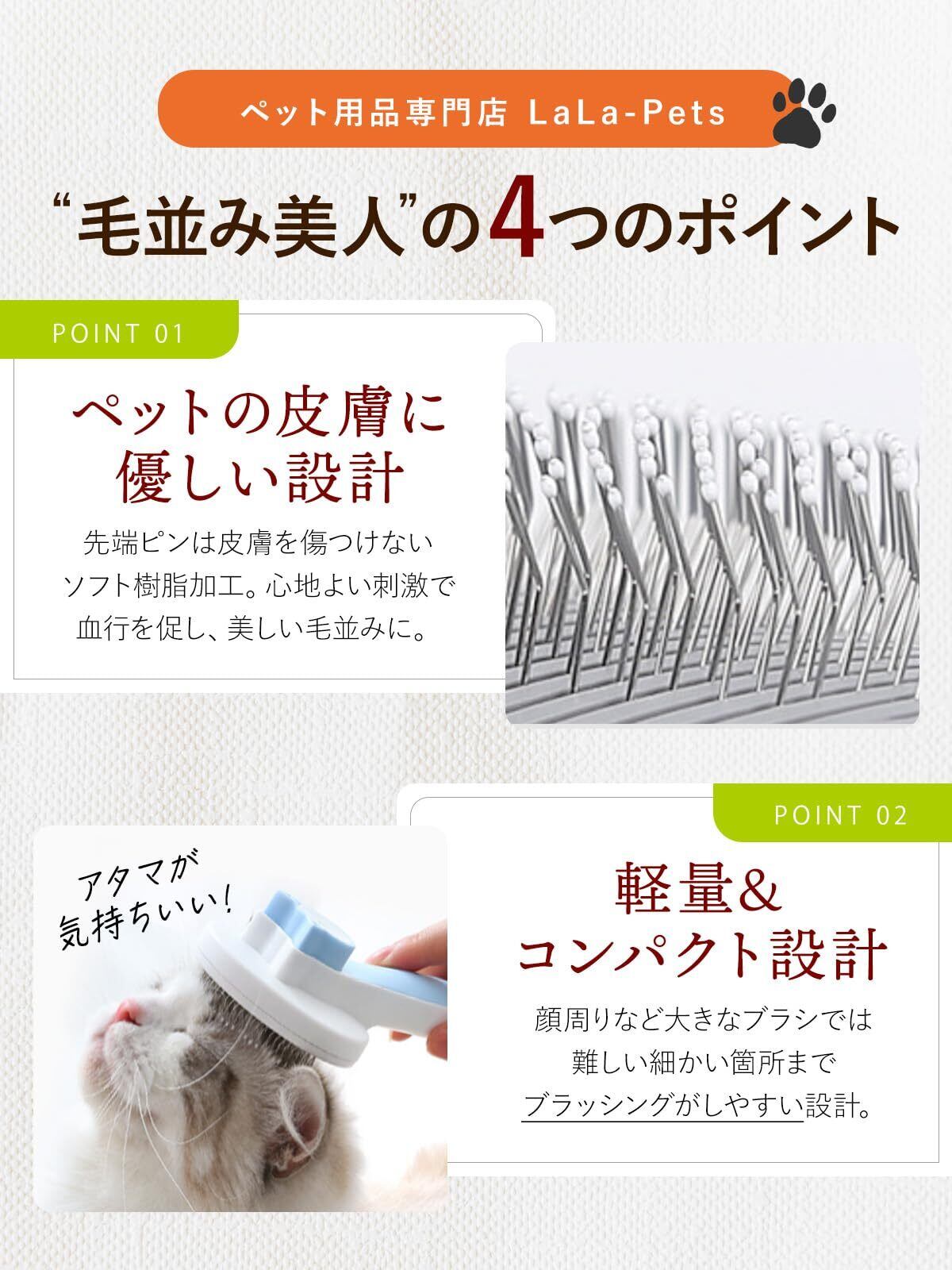 【軽量&コンパクト】体の小さなワンちゃん、猫ちゃんにも最適 軽量&コンパクトで長時間のブラッシングでも疲れにくく、小型犬や猫ちゃんの顔まわりでも使いやすい仕様です。 小型犬・中型犬・猫の毛並みをふわふわ&サラサラに整えられるので、トイプードル、チワワ、ラグドール、メインクーンなどのペットにおすすめです。【サイズ: 約18.5cm×約7.5cm×約5cm 重さ: 約76g(軽量設計)】