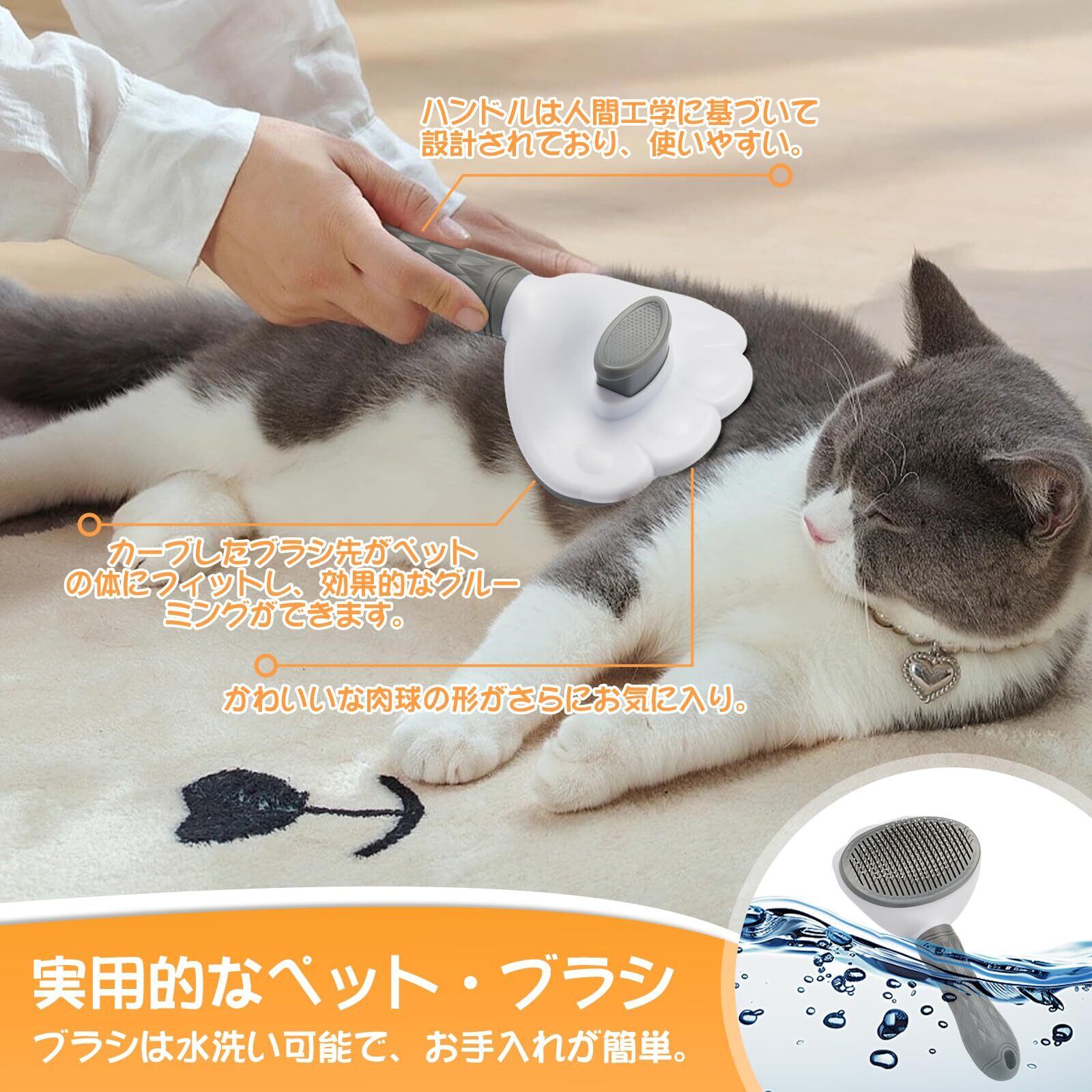 ワンプッシュ式で毛取りペット用ブラシ:ワンプッシュ式で毛取り機能付きスリッカーブラシで、優しく押すとブラシについた毛が取れる。 ペットブラシ 本体は丸洗い可能で、お手入れも簡単です。 猫 毛取りブラシの肉球の形はとてもキュートで、猫の毛取りブラシのハンドルは人間工学に基づいて設計され、ペットの飼い主がより快適に使用できます