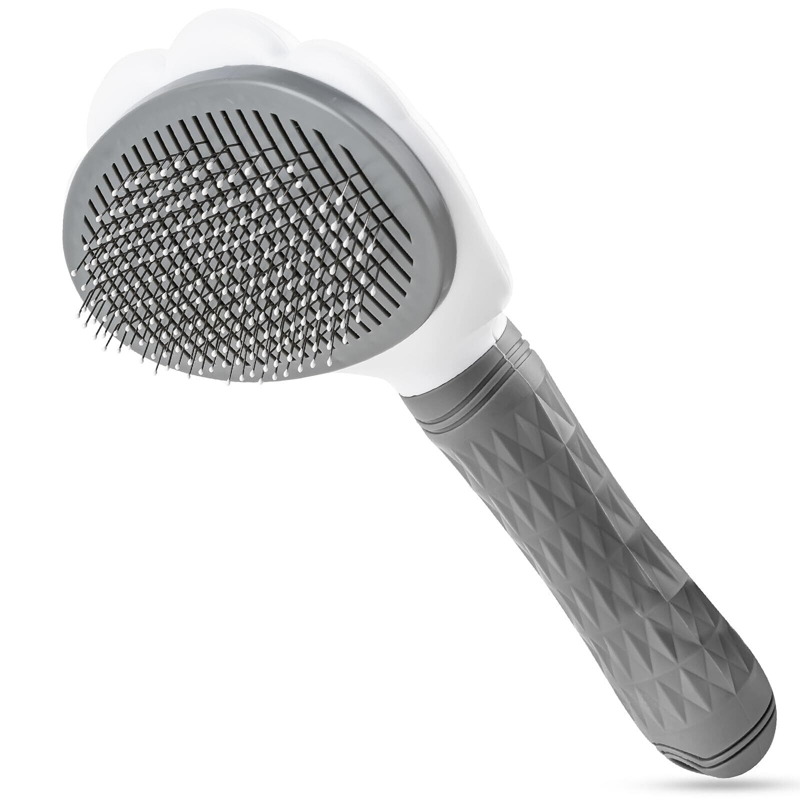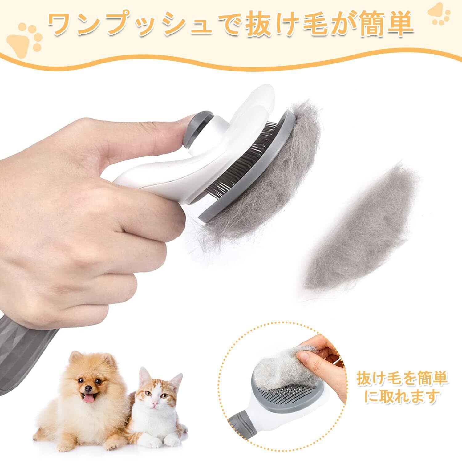 ペット用ブラシ Funshare 猫 犬 くし 抜け毛取除去簡単 痛くない ボタンを押してワンプッシュ式 マッサージ 丸洗い可能 皮膚に優しい 短毛 中毛 長毛 通用 グレー