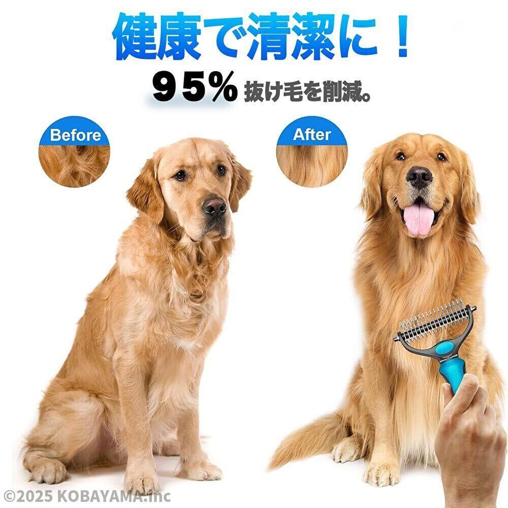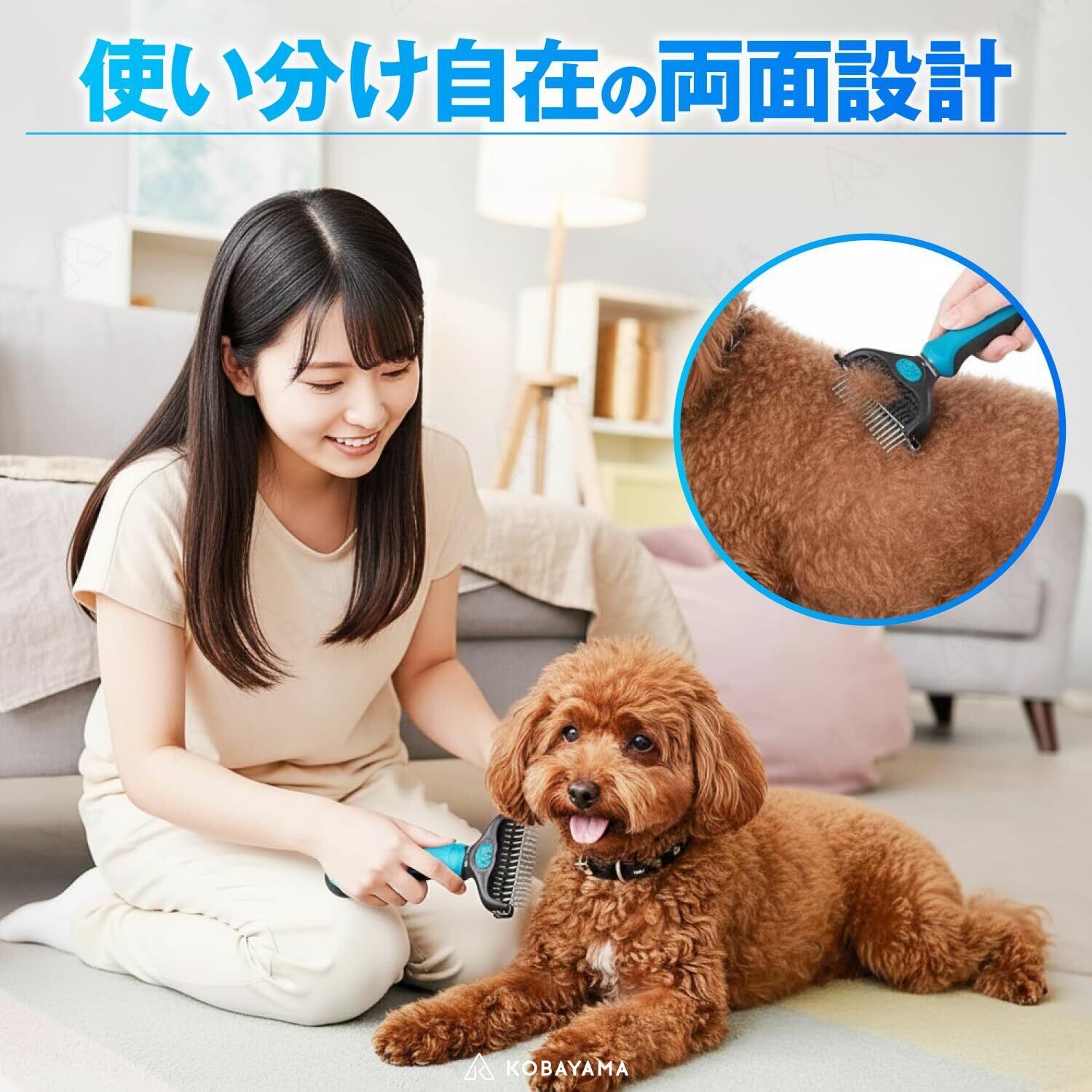 【ごっそり抜け毛除去】両面刃構造により毛をときほぐし、粗目で毛玉を、細目で抜け毛を取り除きます。毛並みの状況によって刃の使い分けができます。