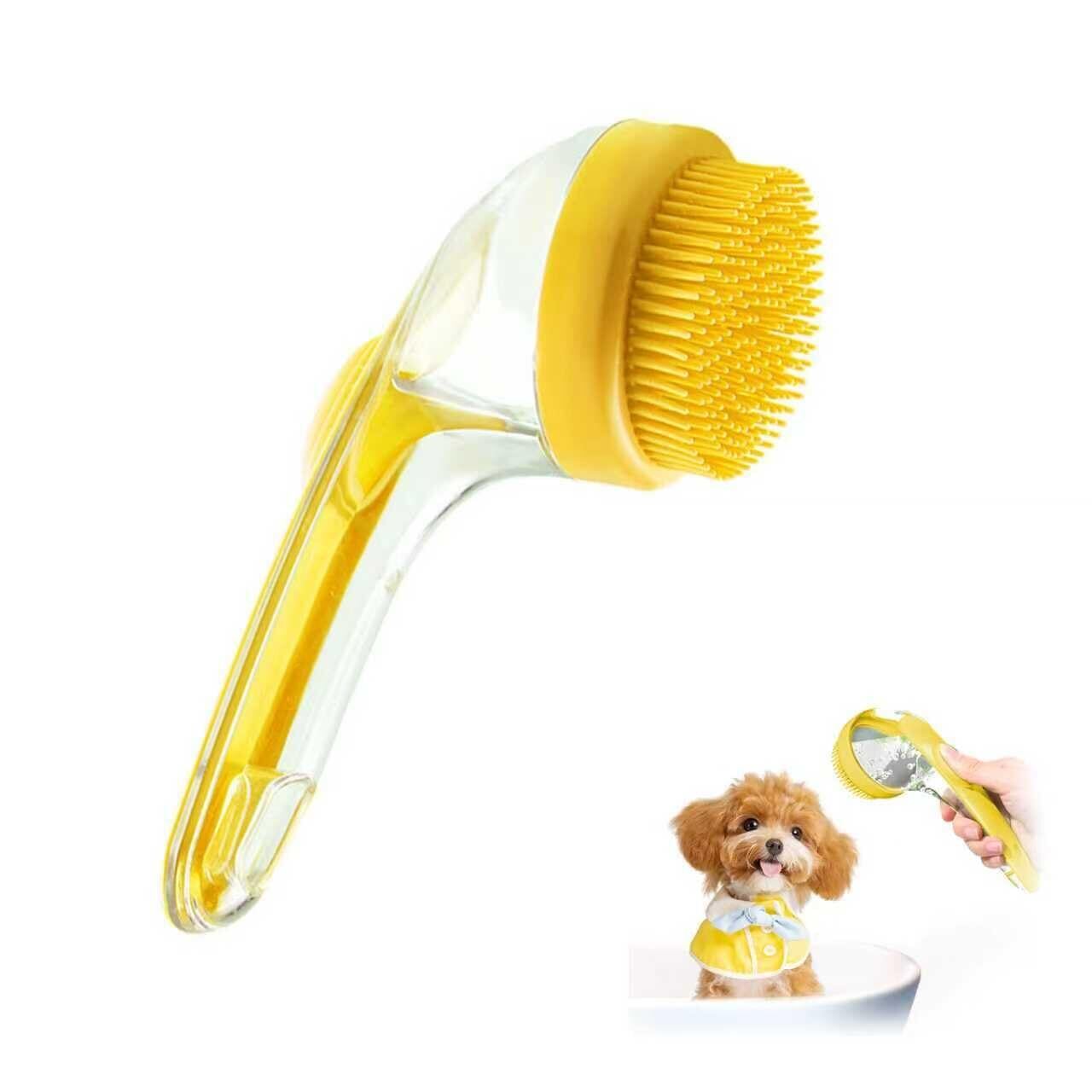 【特価セール】犬 シャンプーブラシ 犬用洗濯ブラシ 泡立て器 ソープディスペンサー付き バスブラシ シャンプーディスペンサー ドッグシャワーブラシ ペット用バスブラシ シリコン製 マッサージブラシ 猫・犬兼用 (イエロー)