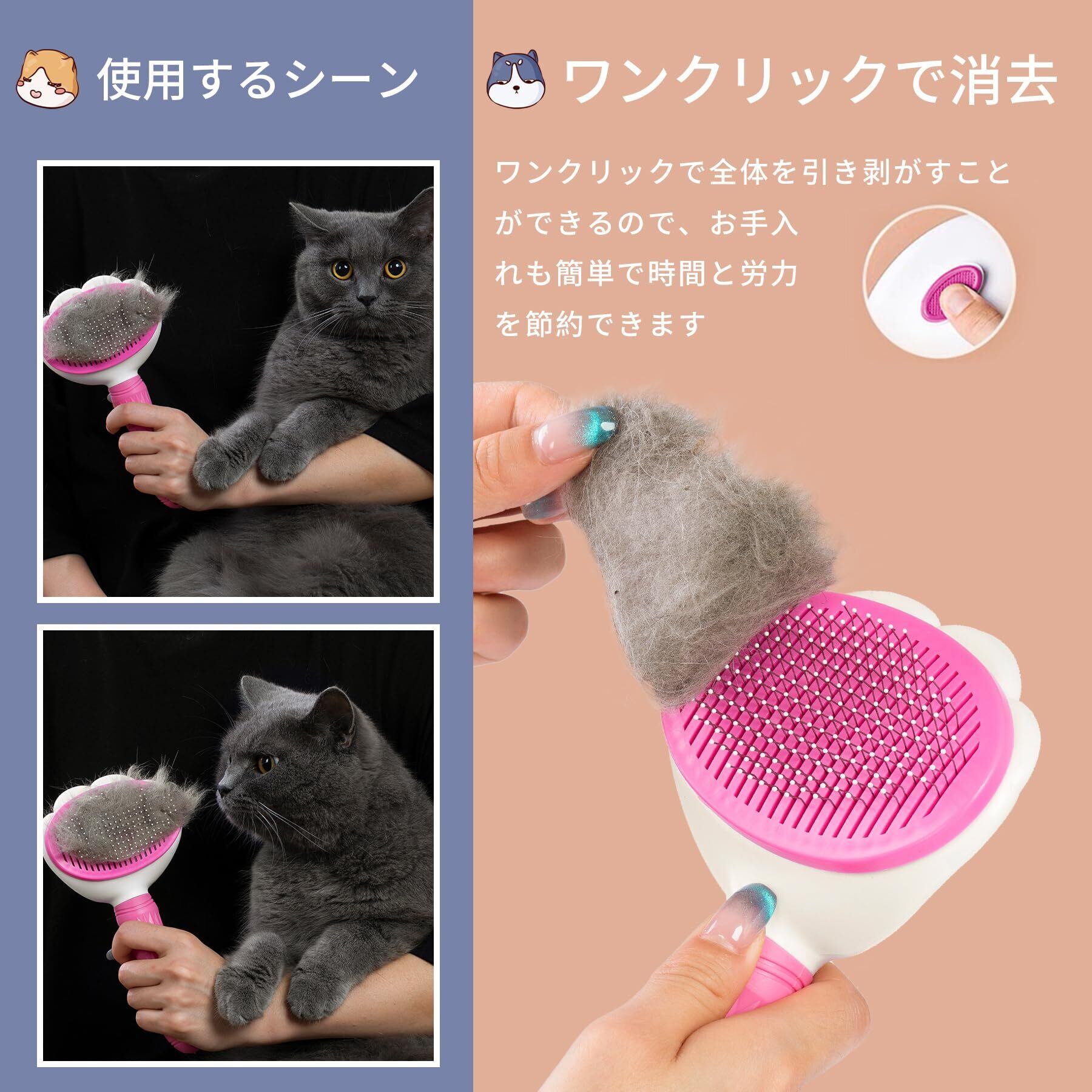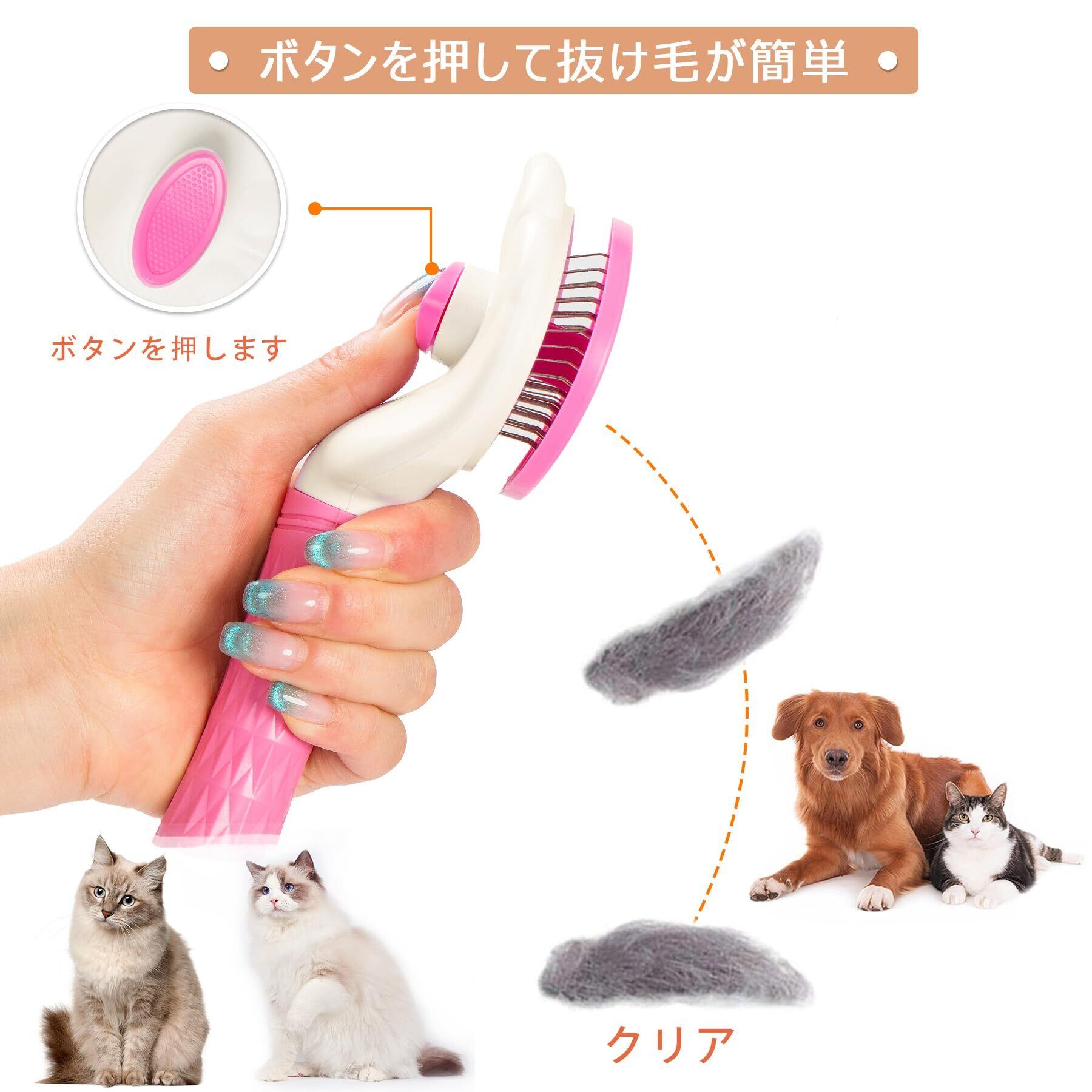 【正規品】SanMori ブラシ 猫 犬 猫ブラシ ペットブラシ ヒーリングブラシ スリッカーブラシ 痛くない ワンプッシュ脱毛 お手 入れ簡単 滑り止めハンドル 切れ毛防止 入浴と片付け もつれ解消 長毛種・短毛種向け 猫・犬兼用(ピンク)