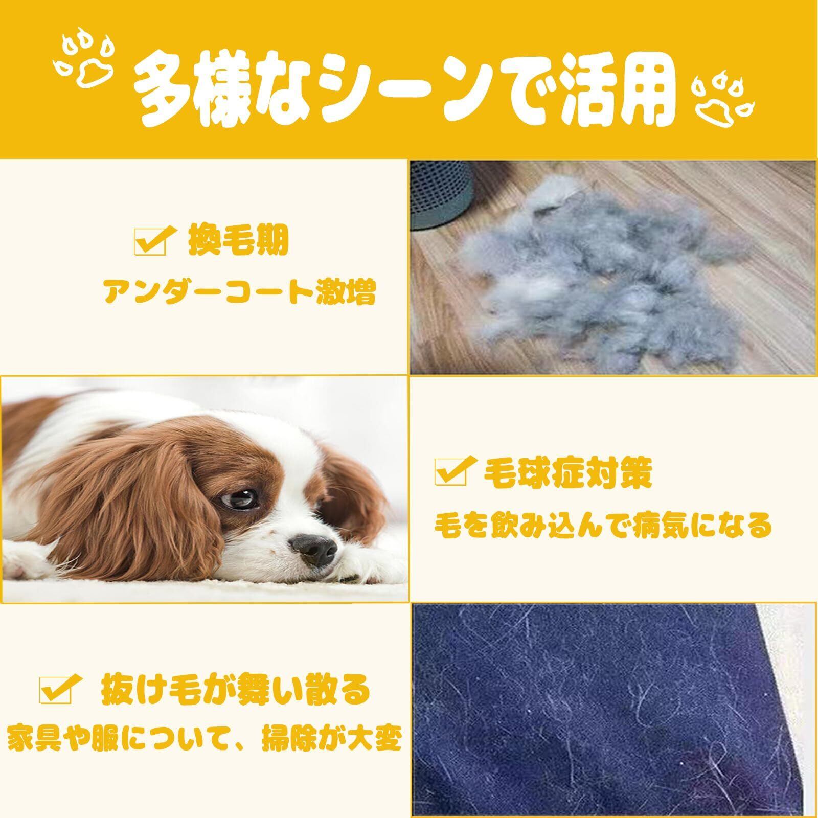 【適用対象と場合】こちらの犬ブラシは長毛種(毛の長さ≧5cm)の犬に適用します。日常の抜け毛取り、ヘアボール対策、夏の熱中症対策や換毛期、様々なシーンに大活躍します。お洋服についた毛や家に舞う毛の量が減り、お掃除が楽になります。