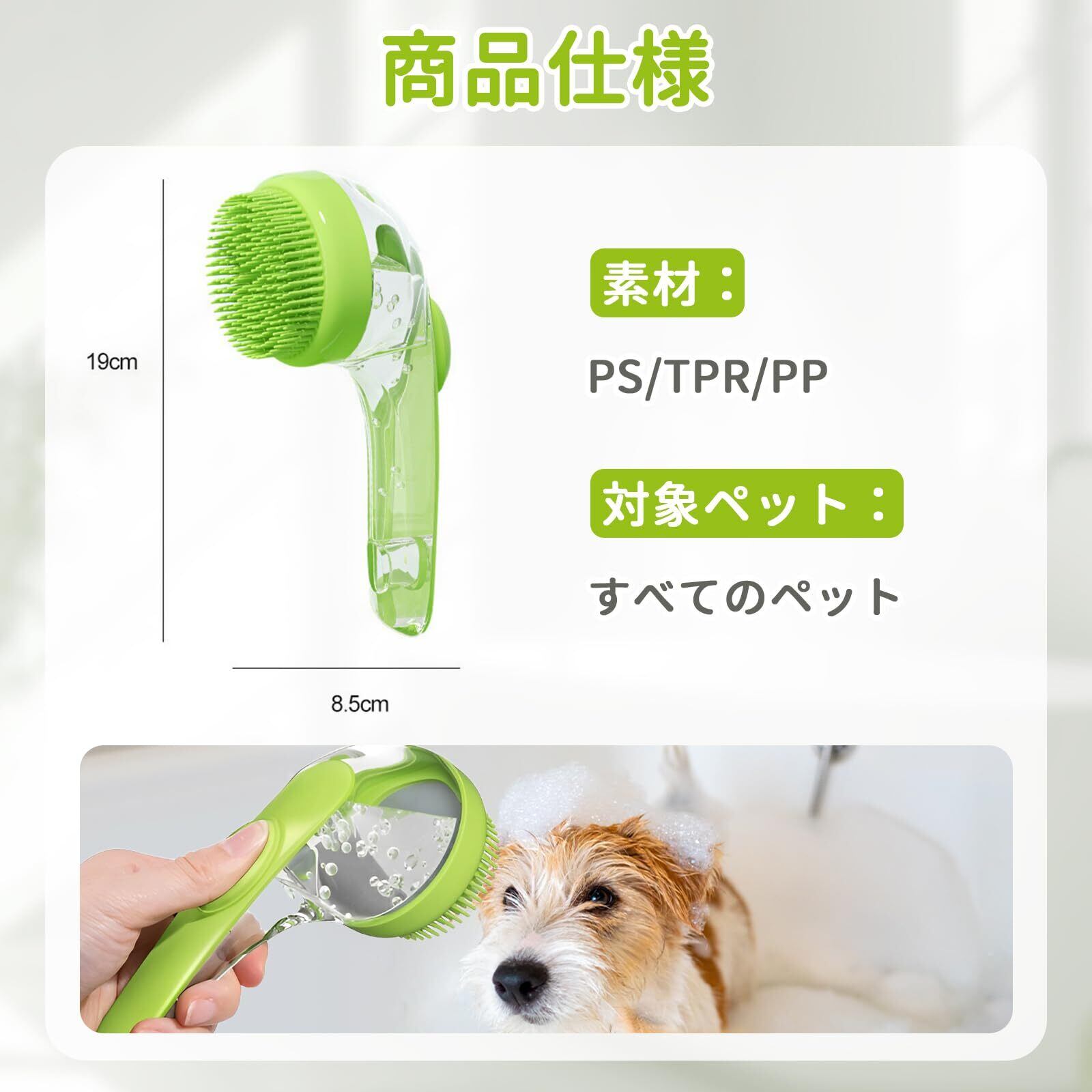 【数量限定】犬 シャンプーブラシ ペット用バスブラシ 犬用洗濯ブラシ 泡立て器 ソープディスペンサー付き シャンプーディスペンサー ドッグシャワーブラシ バスブラシ シリコン製 マッサージブラシ 猫・犬兼用 (グリーン)