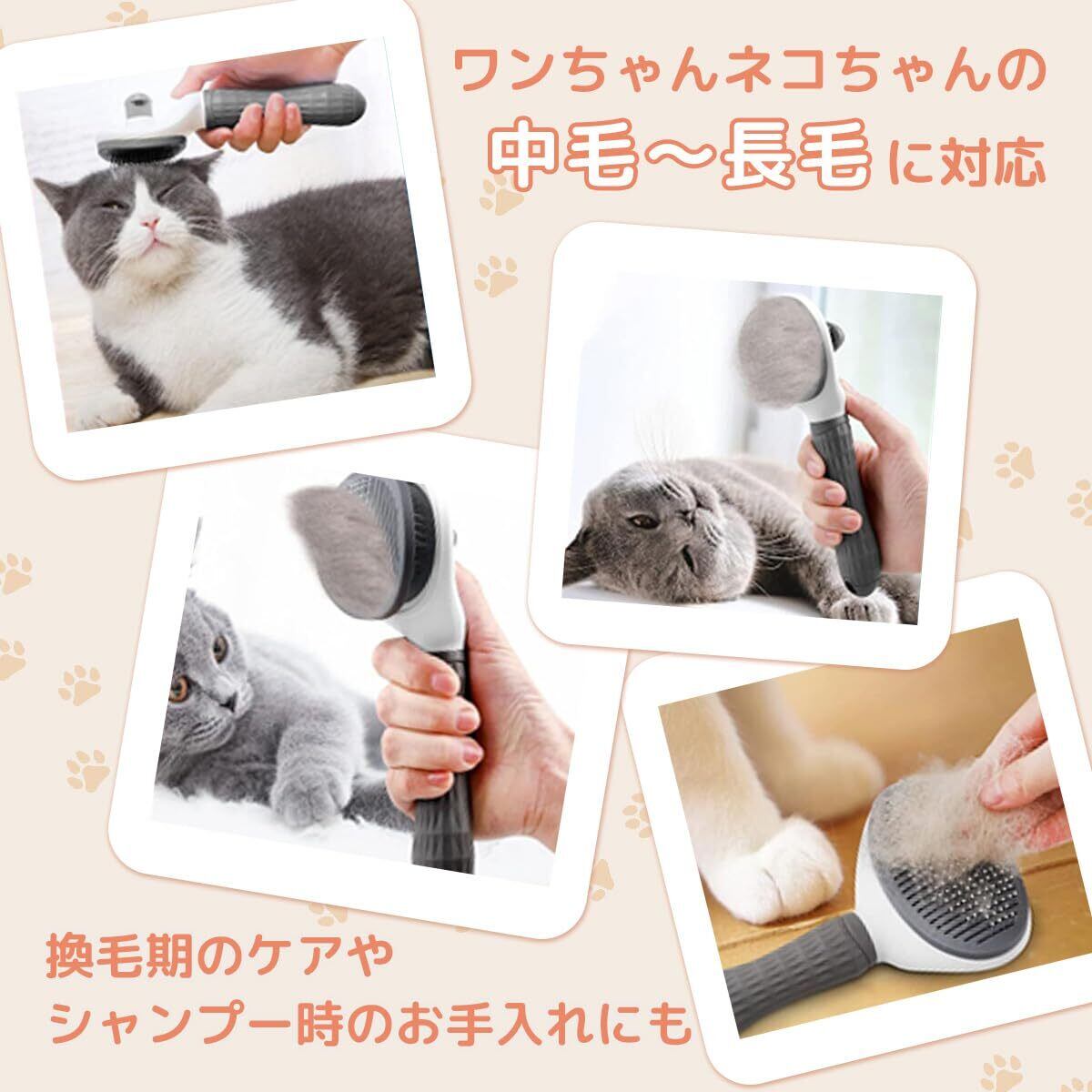 犬や猫の中毛〜長毛に幅広く対応し、換毛期の抜け毛ケアやシャンプー後のドライヤー前のブラッシングにも大活躍。毛並みを整えるだけでなく、お部屋の掃除の手間もカット!
