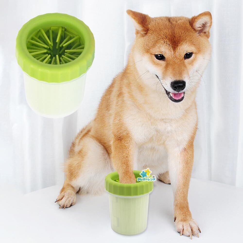 犬猫兼用 足洗いカップ 犬 足洗いボトル 柔らかいシリコン製ブラシカップ 散歩後の汚れ対策 水はね防止 お手入れ簡単 コンパクト&持ち運び便利 (グリーン, S)