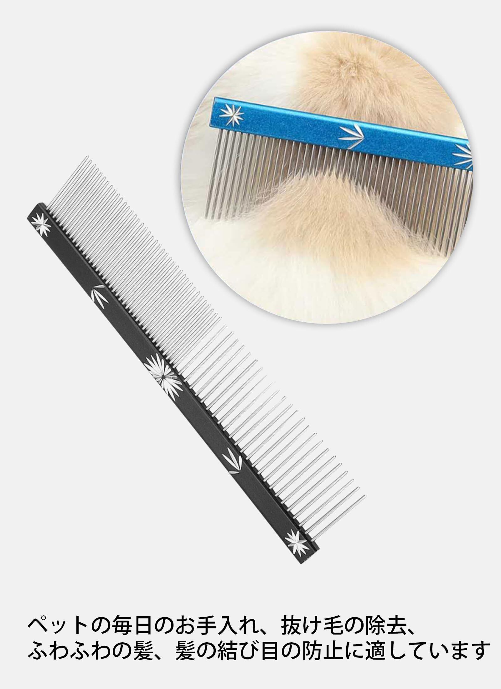 【ダブルコーム仕様】犬や猫用の櫛のまばらな歯は結び目のある髪の毛をほぐすために使用します。しっかりした歯は目や耳、足の整えに使用されます。