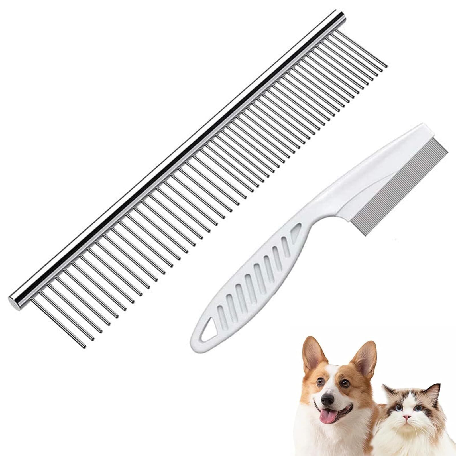 ペットコーム ペットくし 犬猫用櫛 ペットくし 犬猫用コーム 犬猫用くし ペット用くし 犬の櫛 猫 コーム トリミング 櫛 ステンレス製 抜け毛取り もつれ毛解し 静電防止 ペット犬用品 毛並みを整える グルーミングツール ペット美容コーム 2個セット (銀色と白)