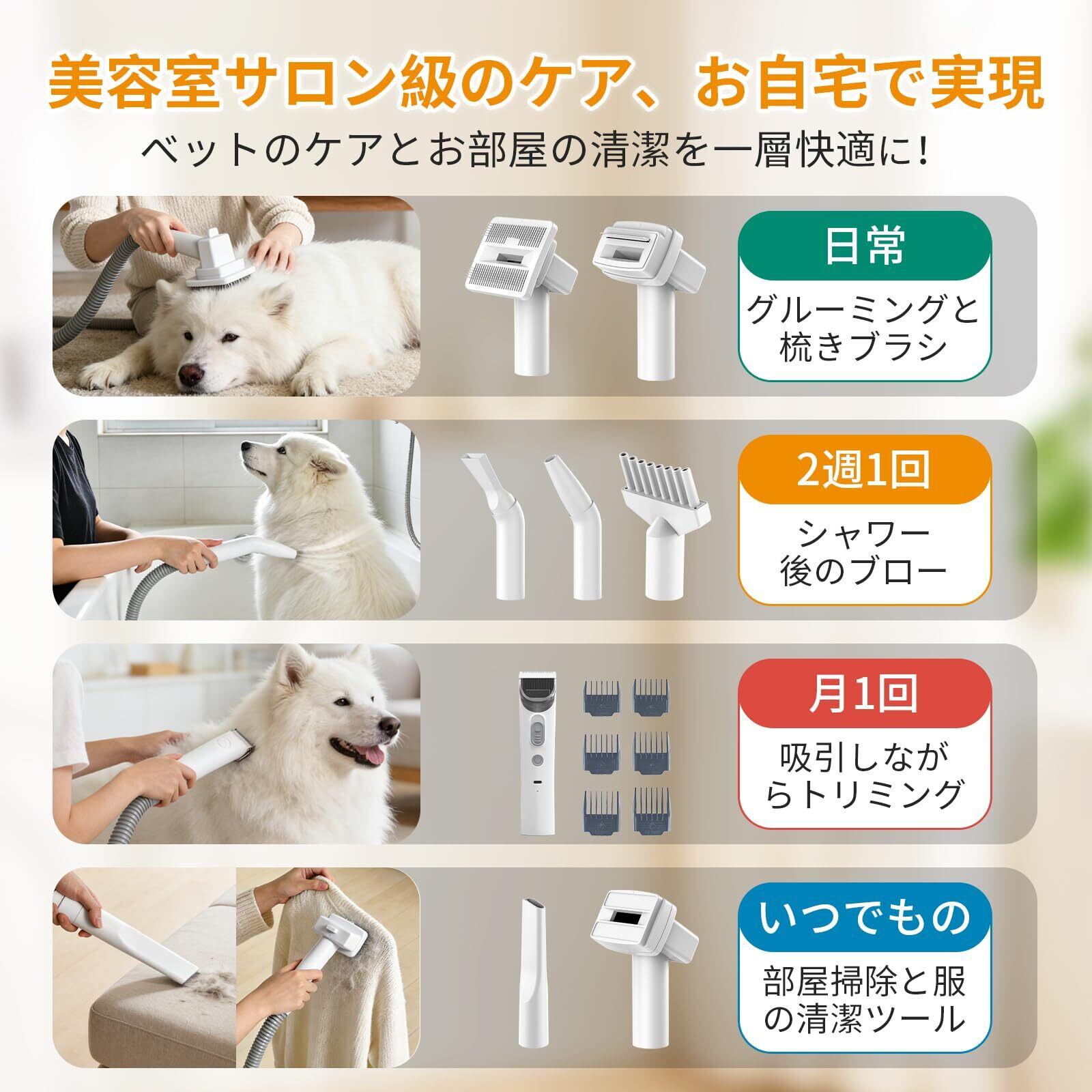 【2025最新登場・万能型】犬用バリカン ペット用バリカン【業界初!グルーミング・トリミング・掃除機・ドライヤー機能を一体化】 猫美容器 ペットグルーミングセット 超強力吸引 温風&送風 冬夏季節対応 3段階強度調整 3段階温度調節 多機能グルーミングキット 犬 猫美容器 猫 抜け毛を自動吸引 多機能ペット掃除機 犬用電動大容量 換毛期対策 多種類アタッチメント付き 日本語説明書 PSE認証済