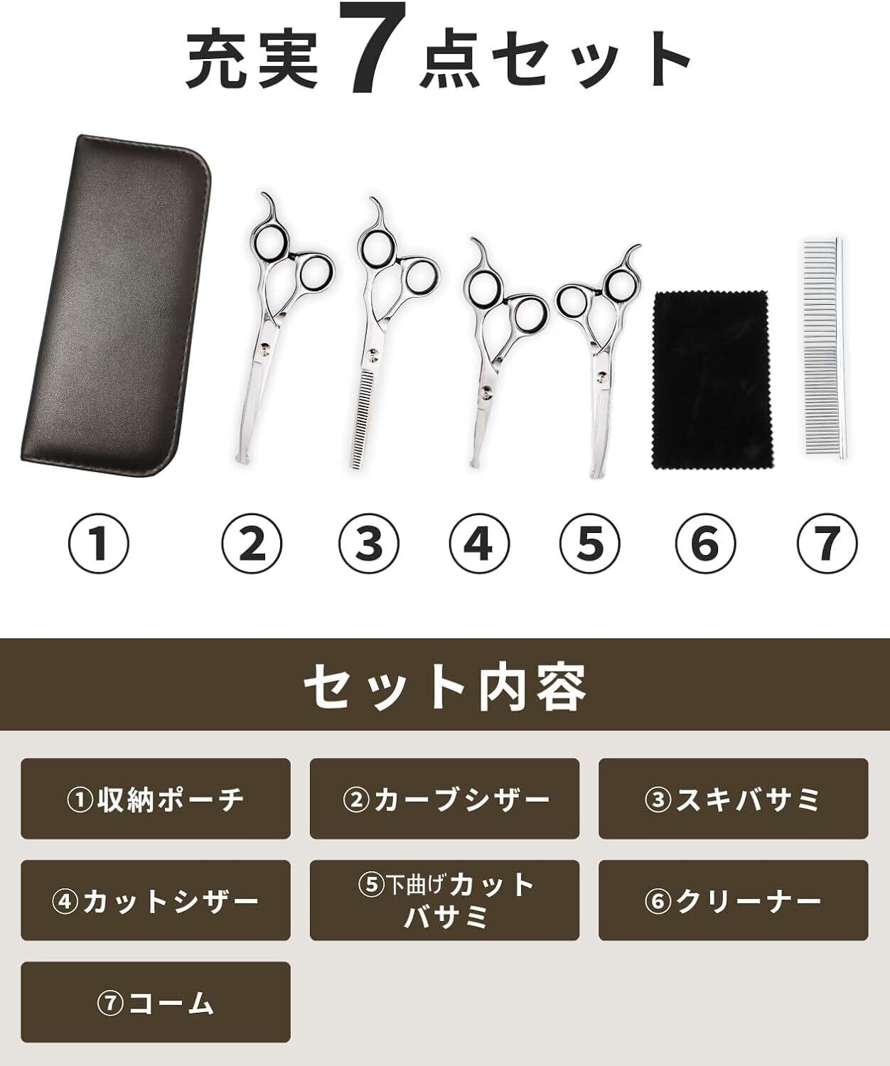 トリミングシザー ハサミ 7点セット [プロトリマー監修] 付き 犬 トリミング ペット用 初心者向け 安全性 ケース付き セニング すきばさみ ボブ カット カーブ