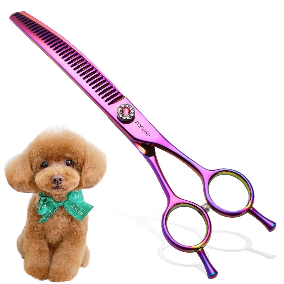 [多目的犬用グルーミング鋏] FOGOSPカーブチャンカー鋏は、トリミング、シンニング、スタイリング、シェーピング用に設計されています。 ペットの毛を細くするのは簡単かつ迅速で、新郎の端に向かってスタイリングや整形するときに簡単に使用できます。 まっすぐなハサミやカーブしたハサミだけを使ってカーブを伸ばすよりも、滑らかでふわふわした輪郭を残し、時間を節約します。 かわいく洗練されたペットのヘアスタイルを作り出すことは期待を上回ります。