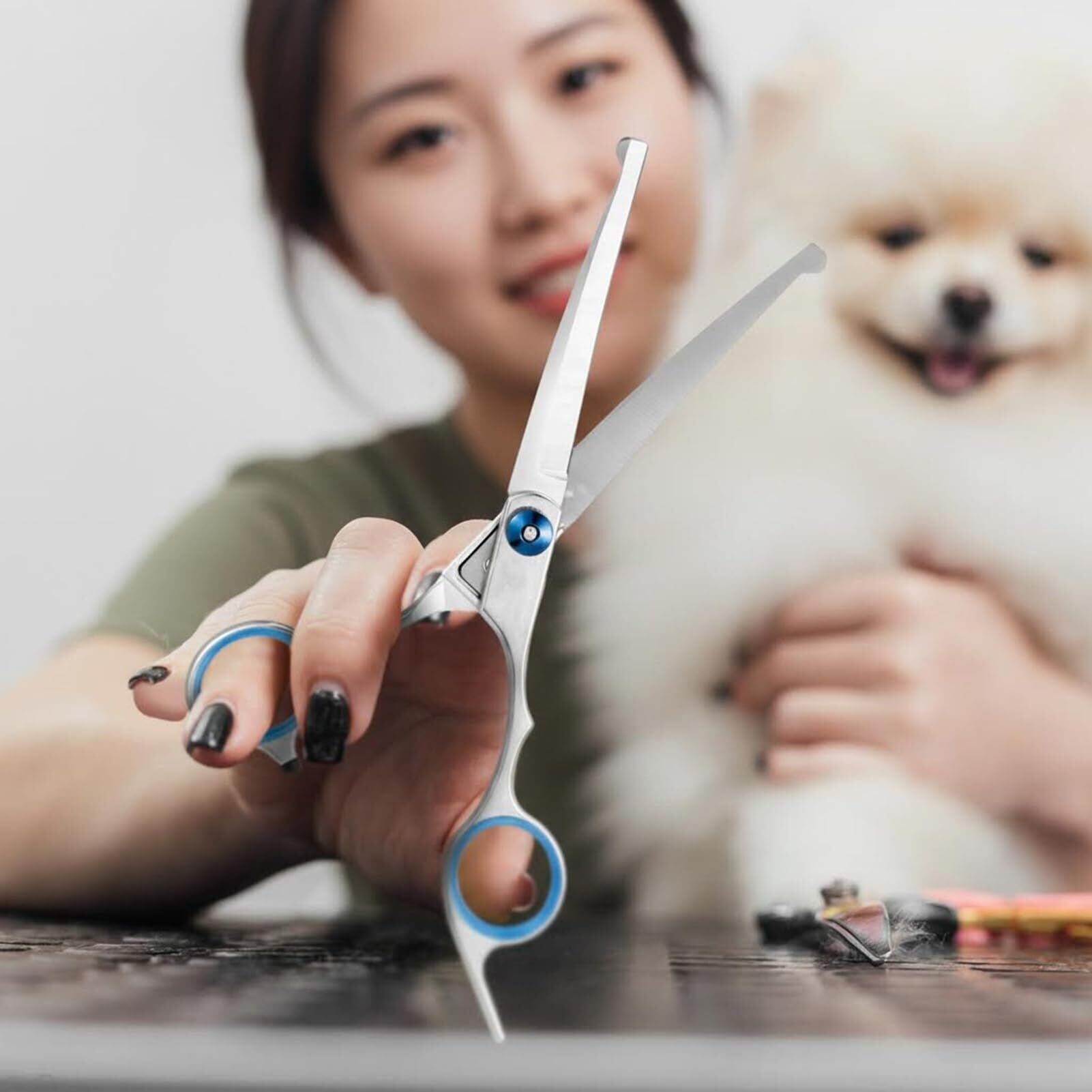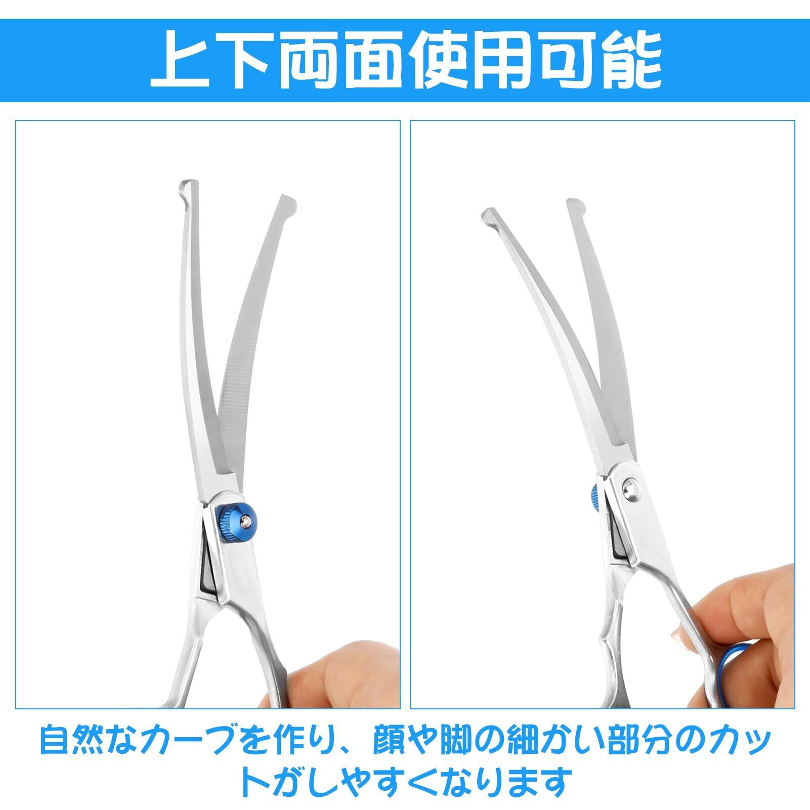【カーブ設計】このハサミは刃がカーブしており、自然な曲線を作り出すことができ、ペットの頭回りや胴体などに丸みのある可愛いラインを出したい時に最適です