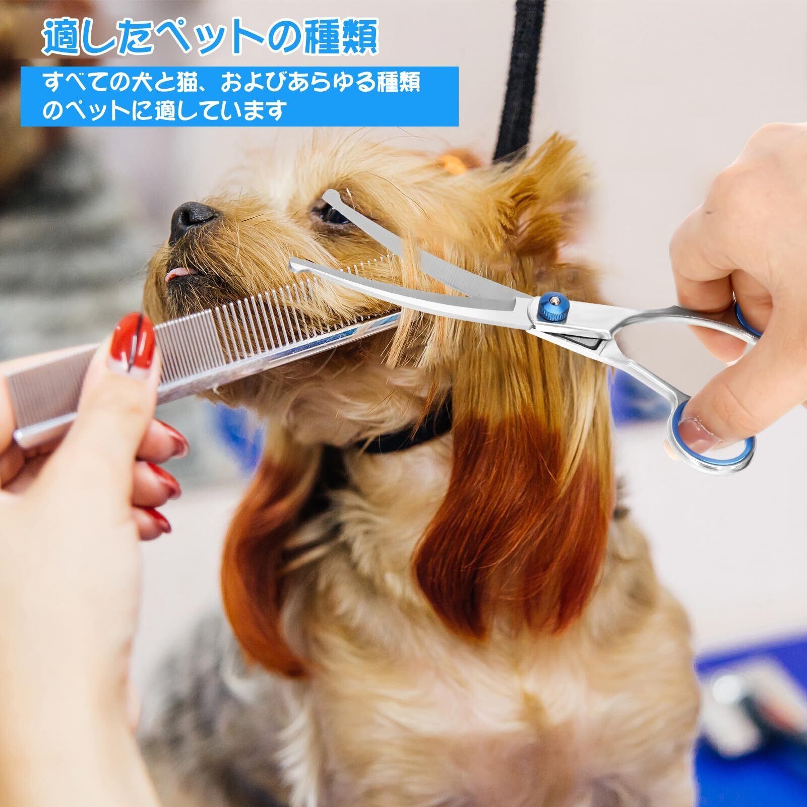 【使いやすい】ペット用グルーミングハサミは軽量で持ちやすく、左手と右手の両方に使用できます。プロでも初心者でも、ペットの体毛のトリミングが簡単になります。また、ペットの毛を切るだけでなく、紙、段ボール、テープなど様々な素材を切ることができ、家庭やオフィスでの使用にも最適です