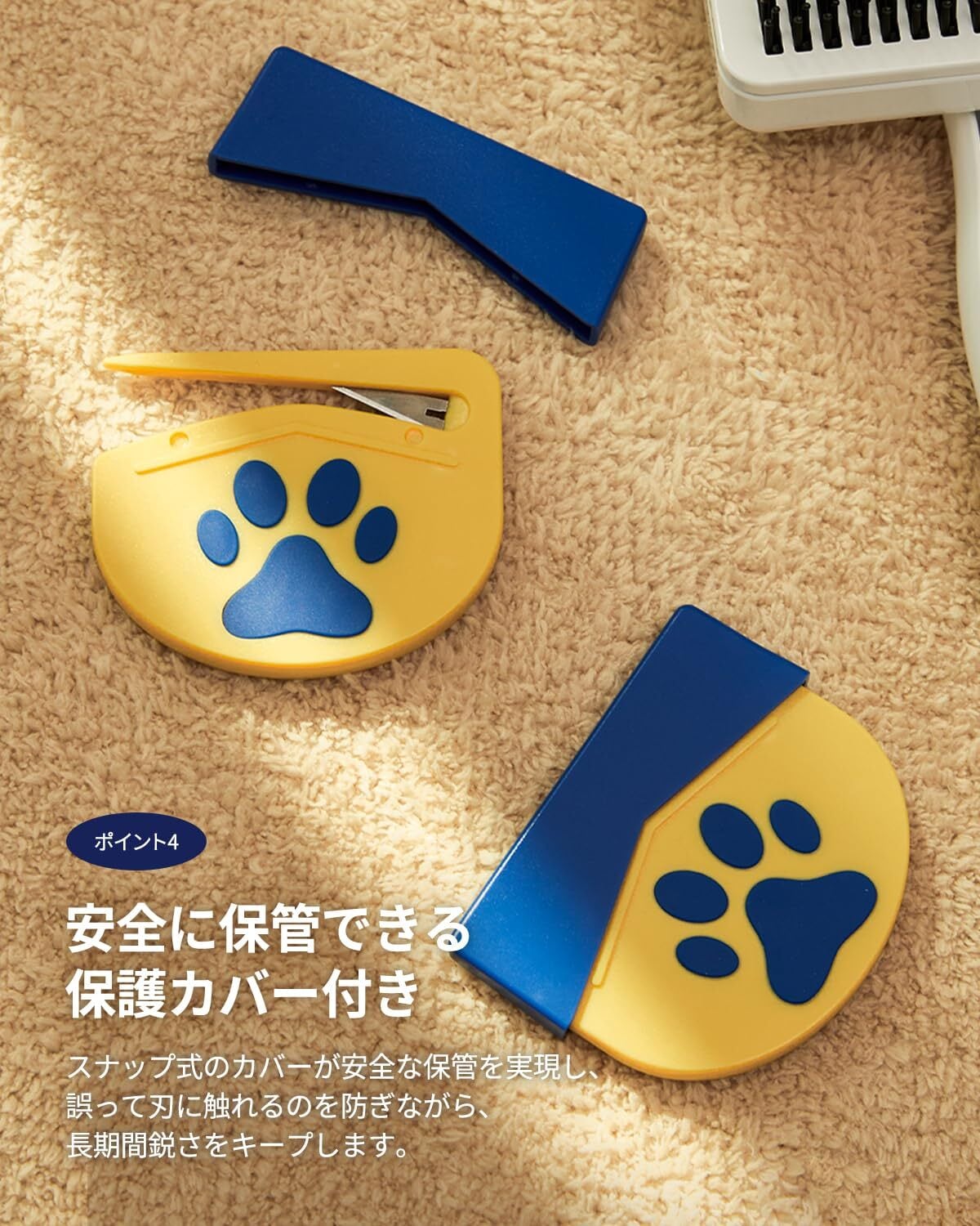 【耐久性のあるスチールブレード】 サビにくいスチール素材を使用し、毎日のグルーミングに適したシンプルな構造。毛の絡まりにしっかり対応できます。