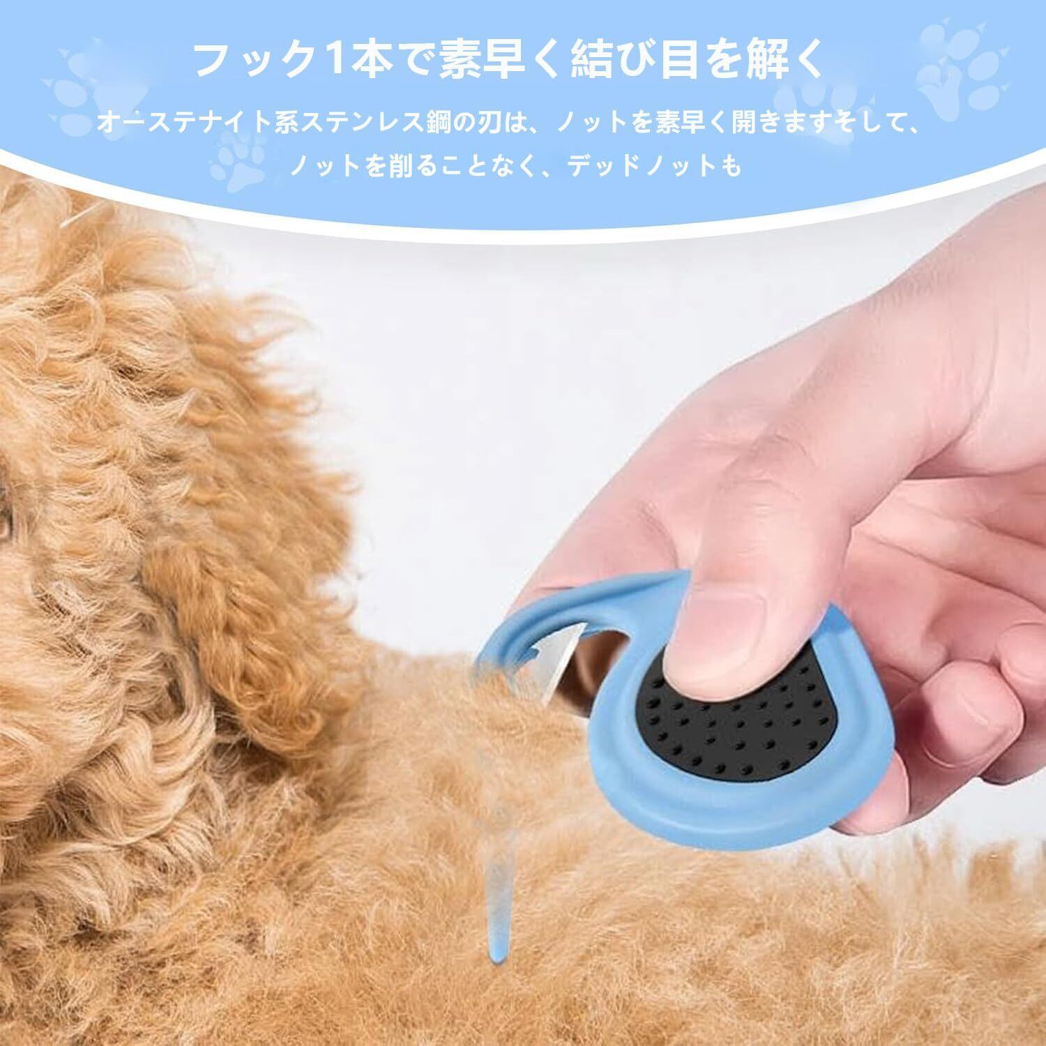 【素材】刃はステンレス鋼で作られ、丈夫で耐久性があり、錆びにくく、ペットの毛の結び目を簡単に掃除し、家を清潔で整頓した状態に保ちます。ハンドルはプラスチック素材で作られ、滑り止めで、グルーミング中にペットを引っ掻いたり刺したりするのを防ぎます。