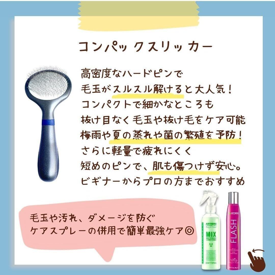 ◇特長・効果 高密度なハードピンで毛玉がスルスル解けると大人気のCOMPACスリッカー!軽量+コンパクトで脇の下など届きにくい場所にも最適で疲れにくい!短めのピンなので、肌も傷つけず安心。ビギナーからプロフェッショナルまでおすすめです。 毛玉やもつれが出来やすい子には是非試して頂きたいコンパックスリッカーです!