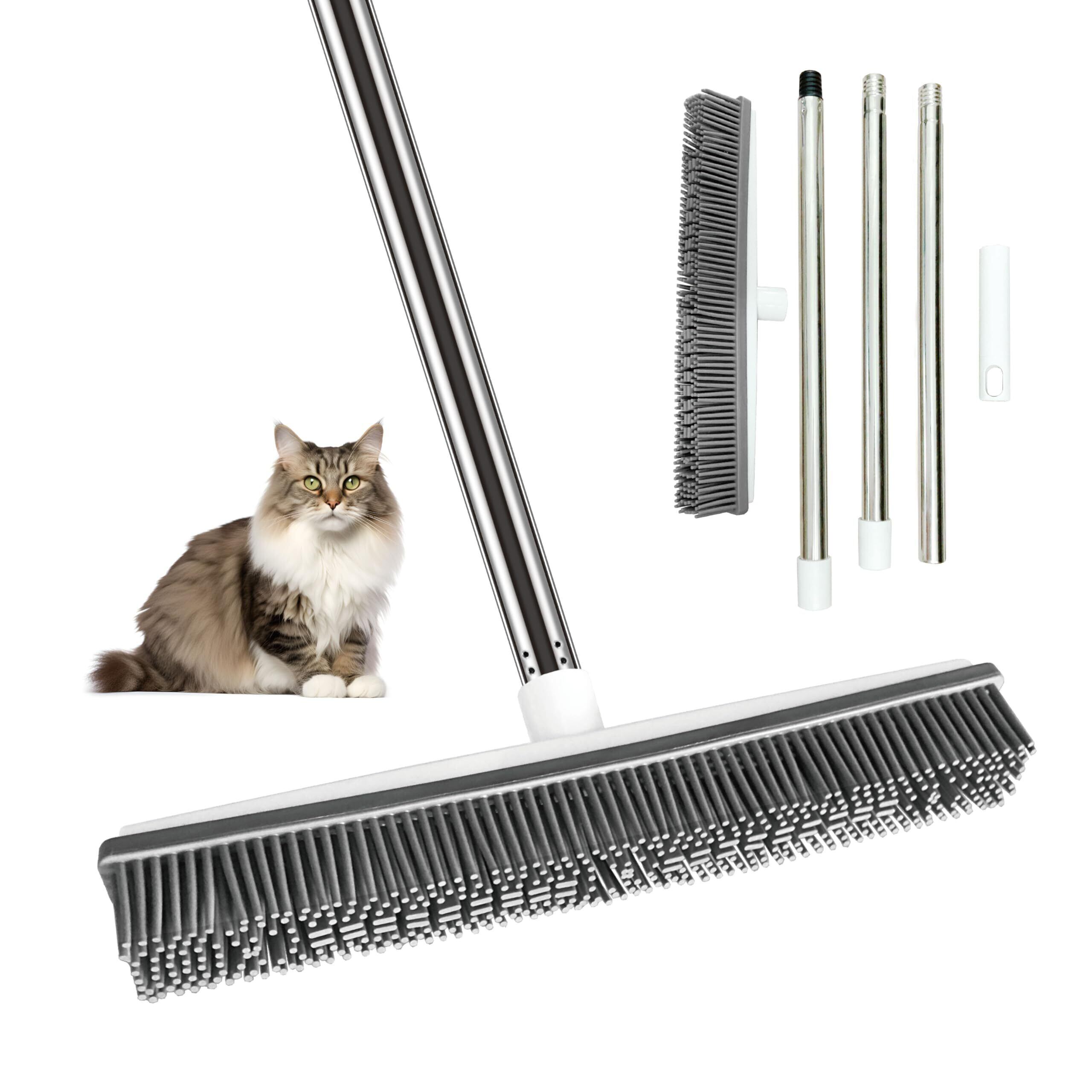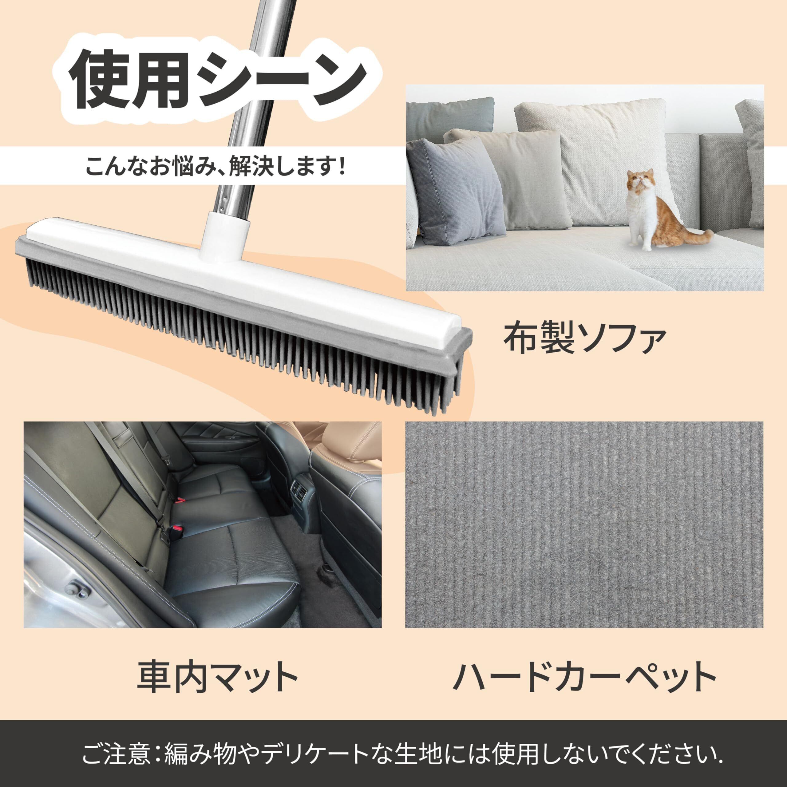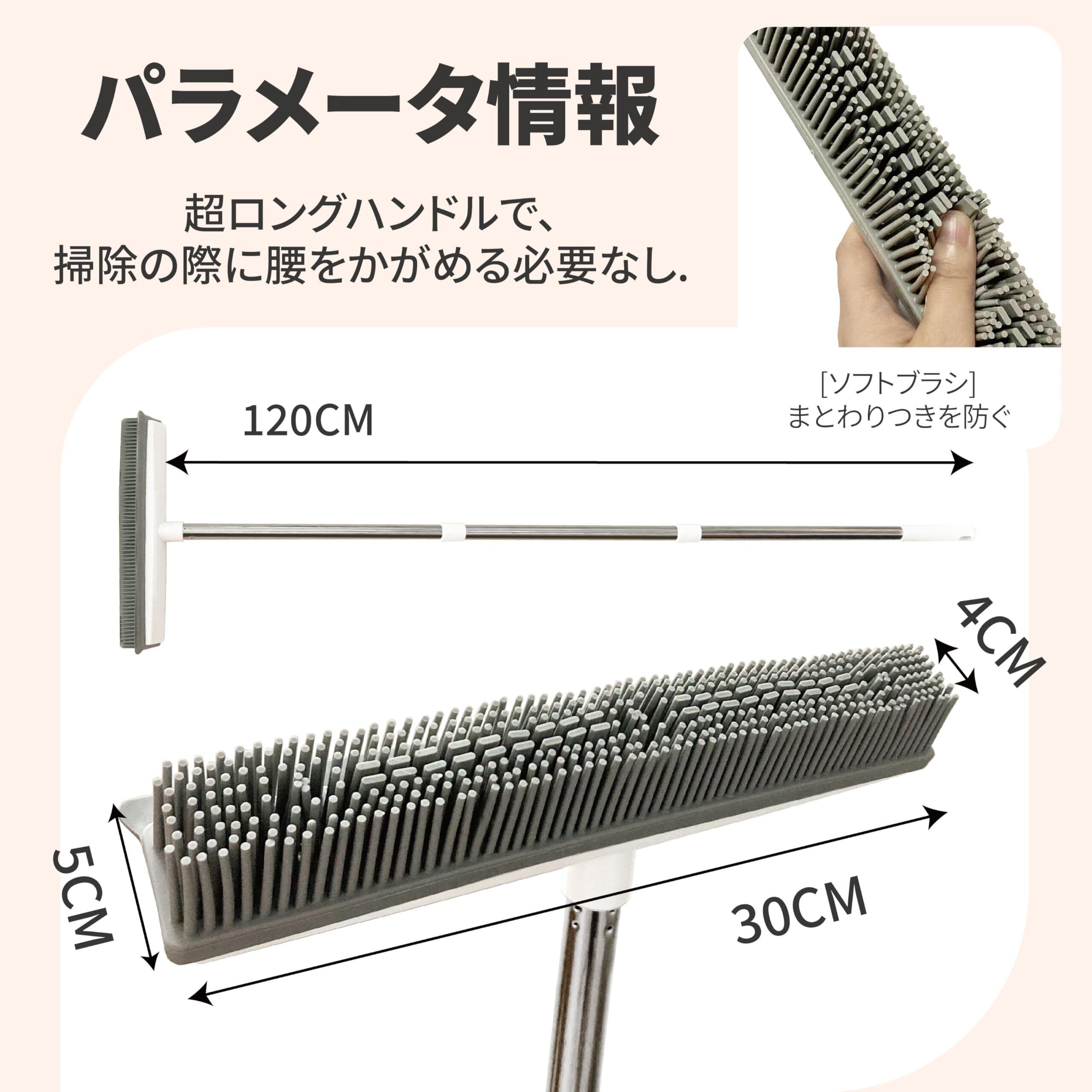 シリコン素材 カーペット 用 毛取り ブラシ 低パイルカーペットの毛取り 犬猫の毛リムーバー 水洗い可能 80cm/120cm長さ調節可能 立ったまま掃除OK(ホワイト)