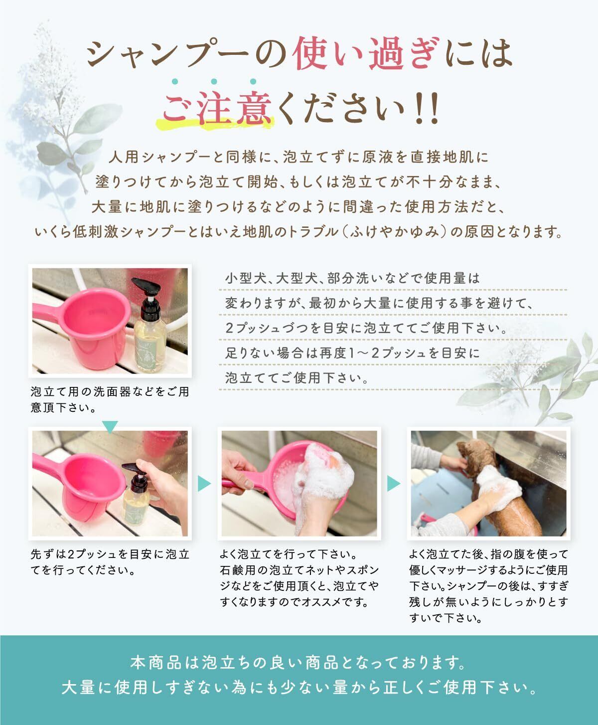 低刺激、香り、泡立ち、泡切れとワンちゃんと飼い主様の事を考えて開発されたドッグシャンプーでトータルバランスに非常に優れております。