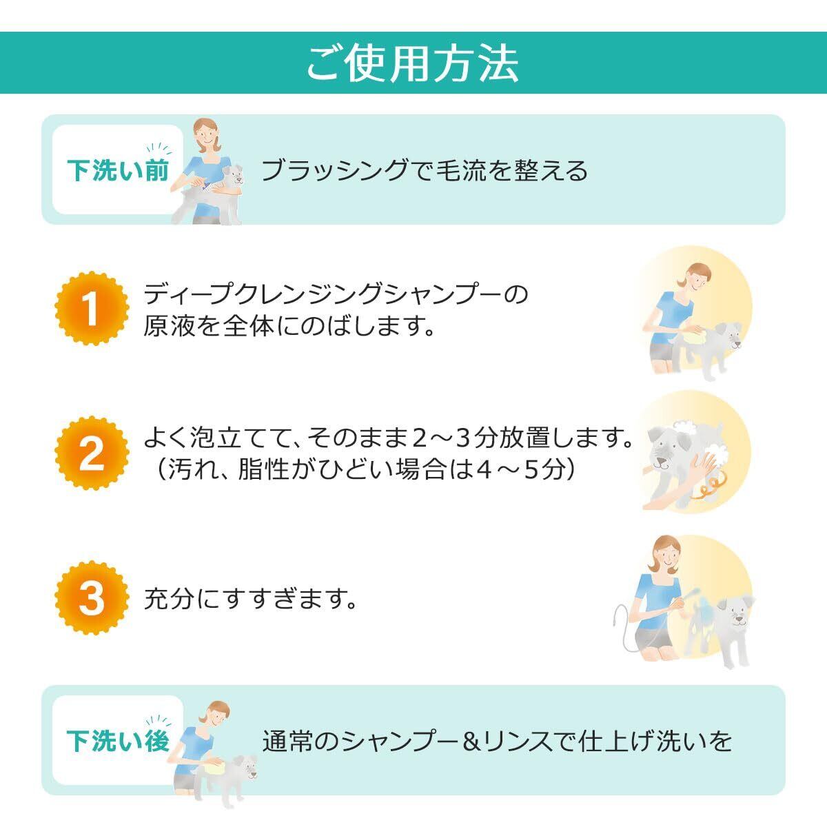 商品の推奨用途 汚れがひどいワンちゃん、ネコちゃんの下洗い用シャンプー