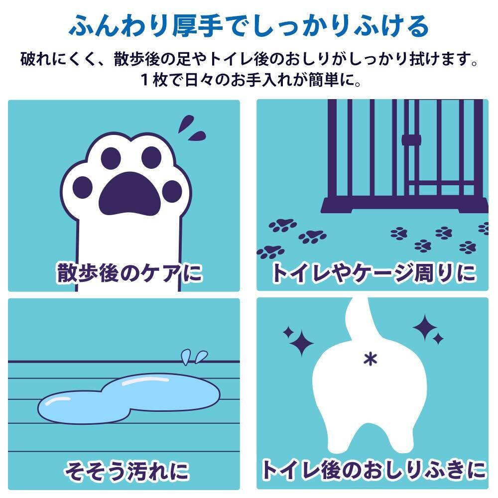 なめても安心! 厚手で使いやすいペット用ウェットティッシュ。