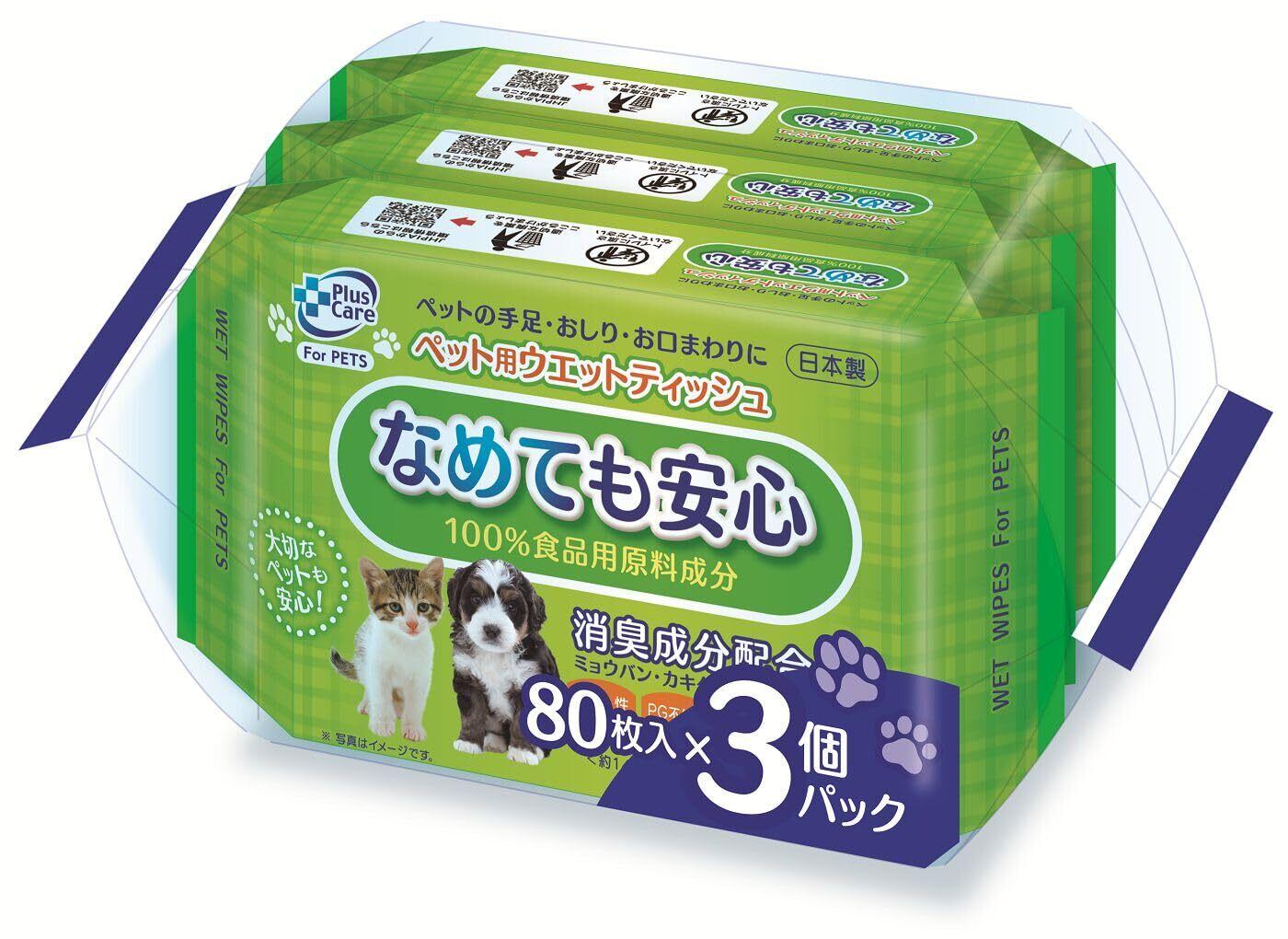 ティー・エイチ・ティー プラスケア フォーペッツ ペット用ウェットティッシュ 80枚入り×3個パック