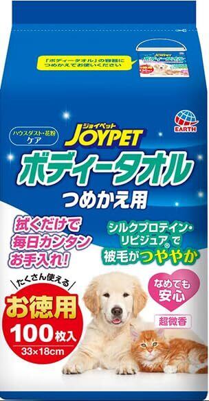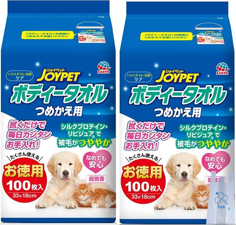 【新着商品】【2個セット】ジョイペット ボディータオル ペット用 つめかえ用 100枚入 計200枚 33×18cm オリジナルレジ袋付き JOYPET 詰替