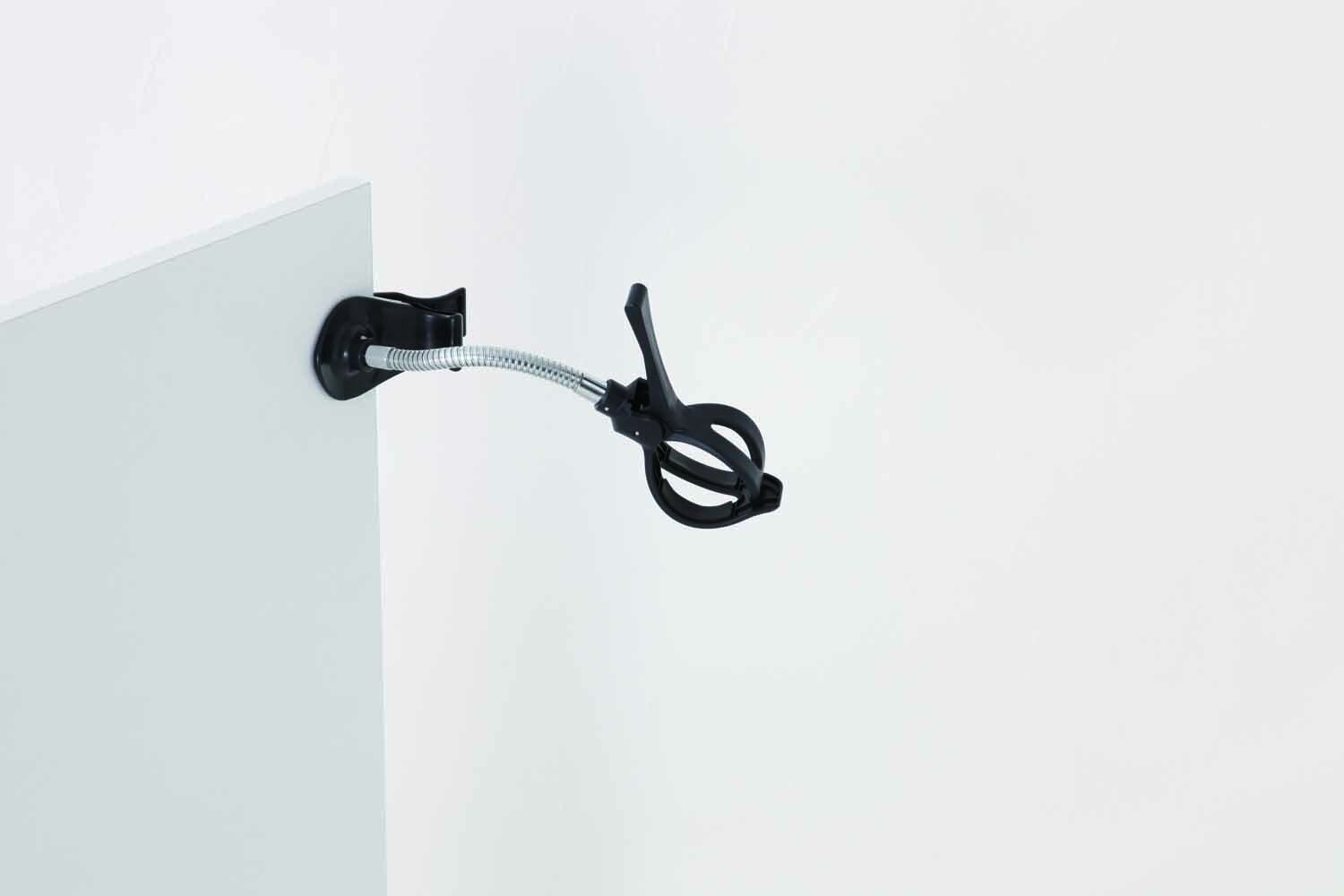 ●ドライヤー本体を挟んで固定、両手でブローできます。向きもお好みの向きに調整できます。 ●板、ポールに設置できるので、洗面台下やタオル収納などさまざまな箇所に設置可能です。 ●800g以下のドライヤーでご使用ください。