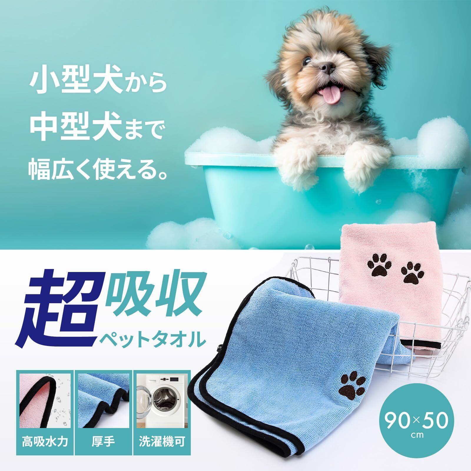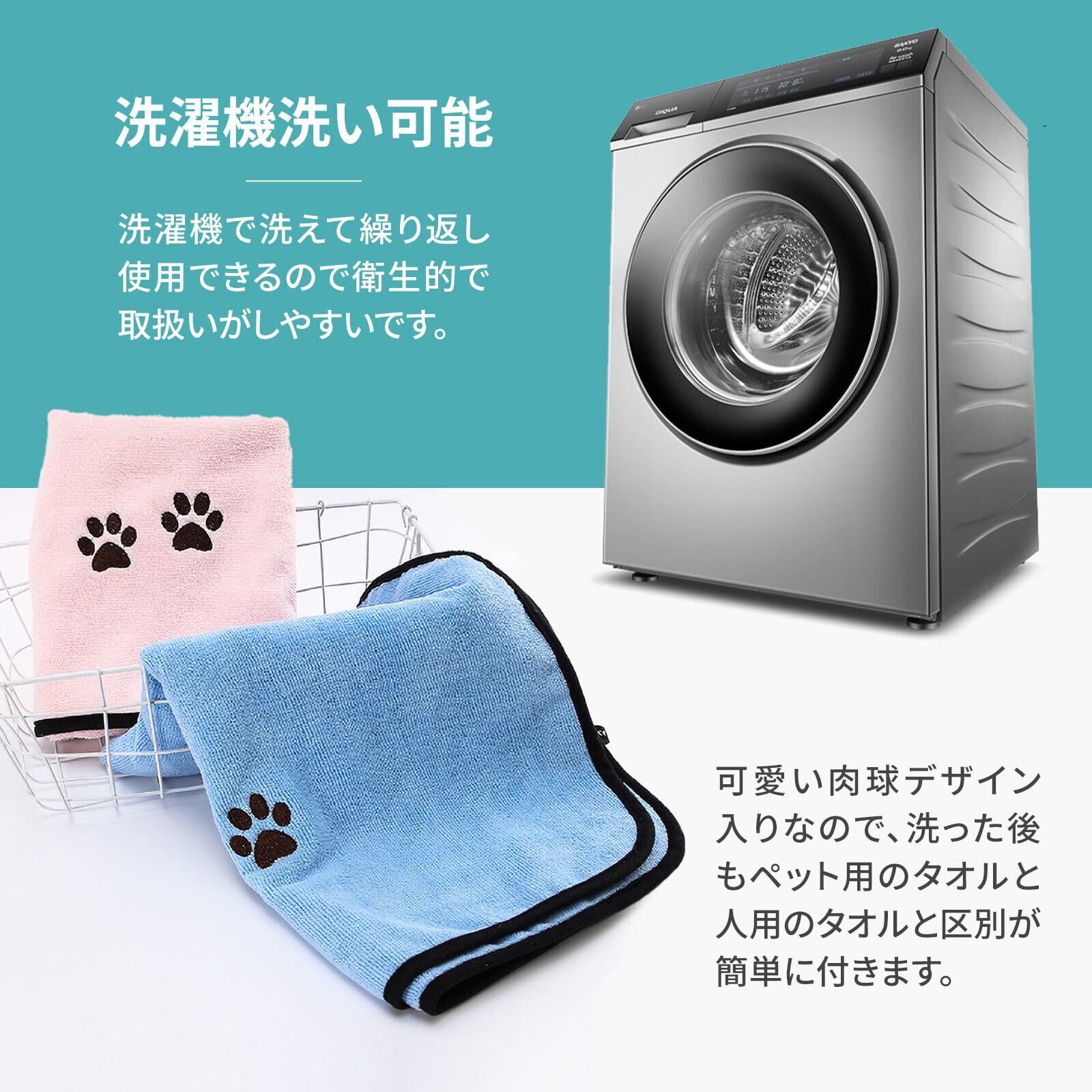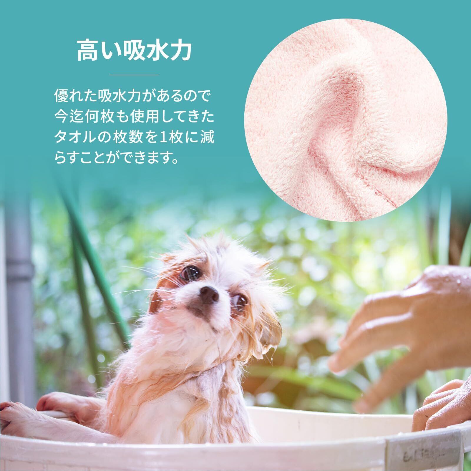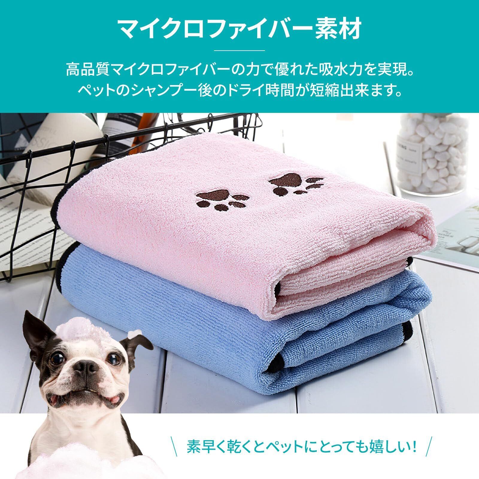 【高品質のマイクロファイバーの力で優れた吸水力を実現】 ●優れた吸水力があるので今迄何枚も使用してきたタオル枚数を減らすことができます。 ●ペットのシャンプー後のドライ時間が短縮出来ます。 素早く乾くとペットもご機嫌! 【肌触りがよくふわふわ】 ●柔らか厚手なので拭いている間のペットのストレスを軽減できます。 【洗濯機で洗えて繰り返し使用出来るので衛生的で取り扱いしやすい】 【大型犬から小型犬まで使用出来る大判サイズ】