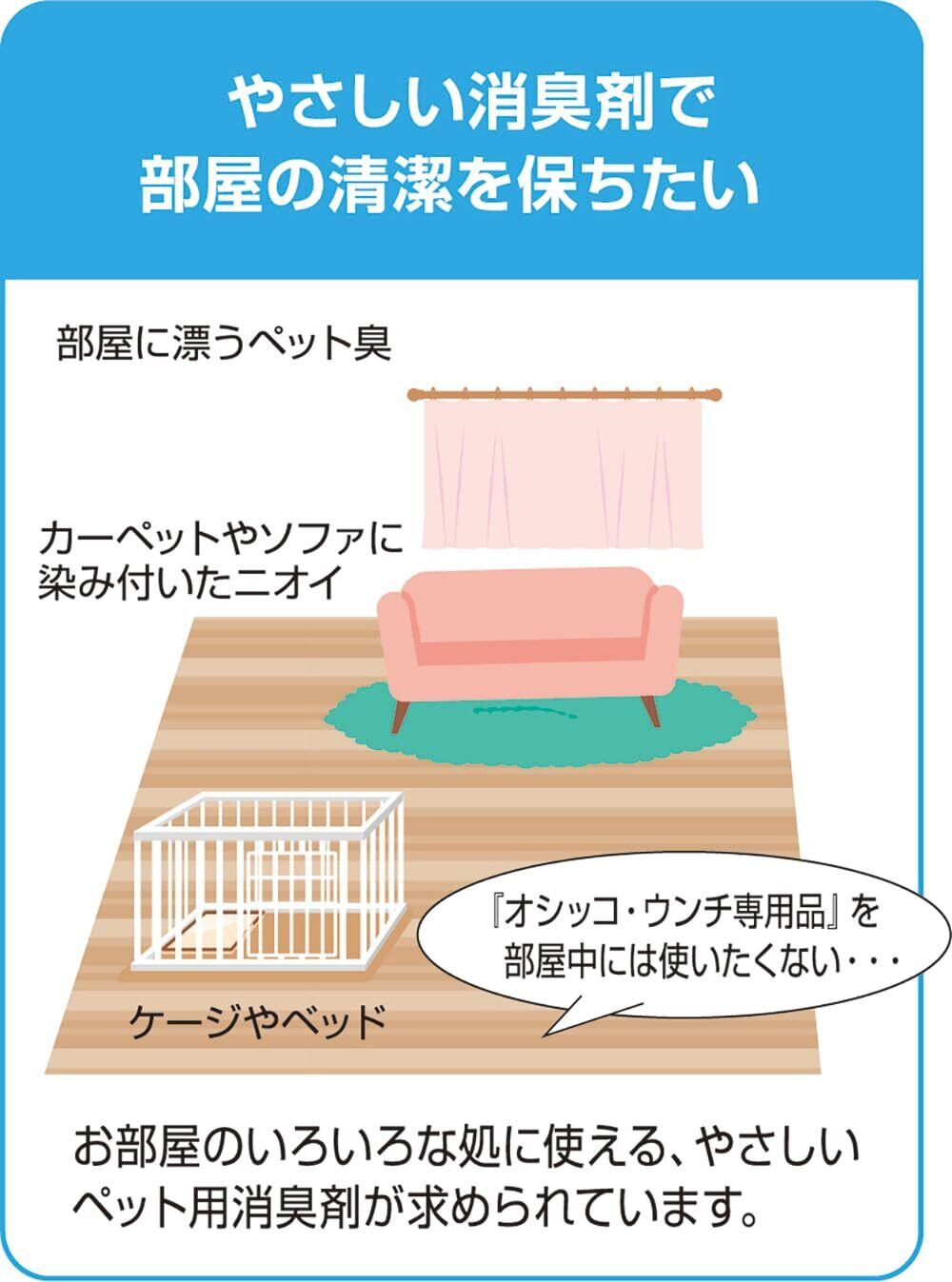 植物生まれの消臭・除菌成分配合。 ペット周りの布製品や用品類の消臭や除菌に。オシッコ臭を99.9%強力消臭、さらに長時間効果が続きます。菌の増殖を抑えて清潔を保ちます。ペットがなめても安心。犬猫の他、うさぎ・ハムスター・鳥などの小動物のニオイにもおすすめ。香りが残らない無香料。