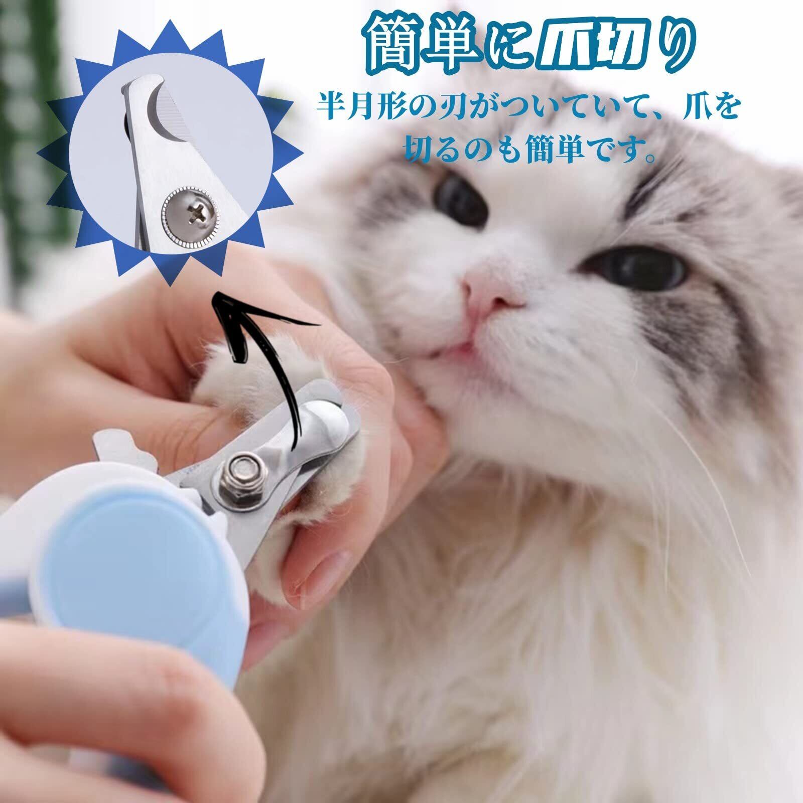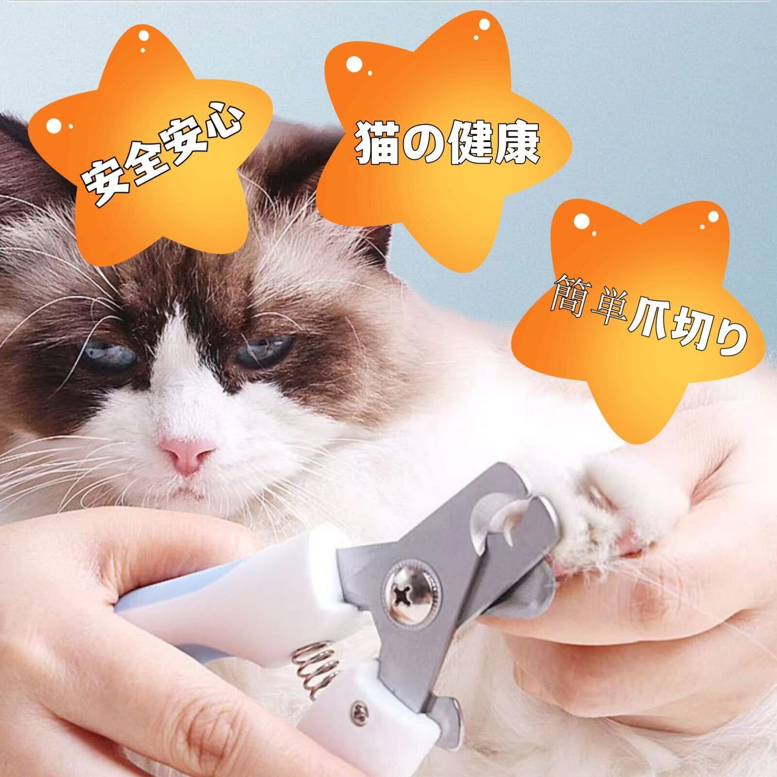 【2022最新】猫 爪切り 初心者用 ペット用爪切 保護ガード 切り過ぎ防止 犬 爪切り 爪やすり付き 持ちやすい ネイルケア 安全安心 猫犬兼用 (水色)