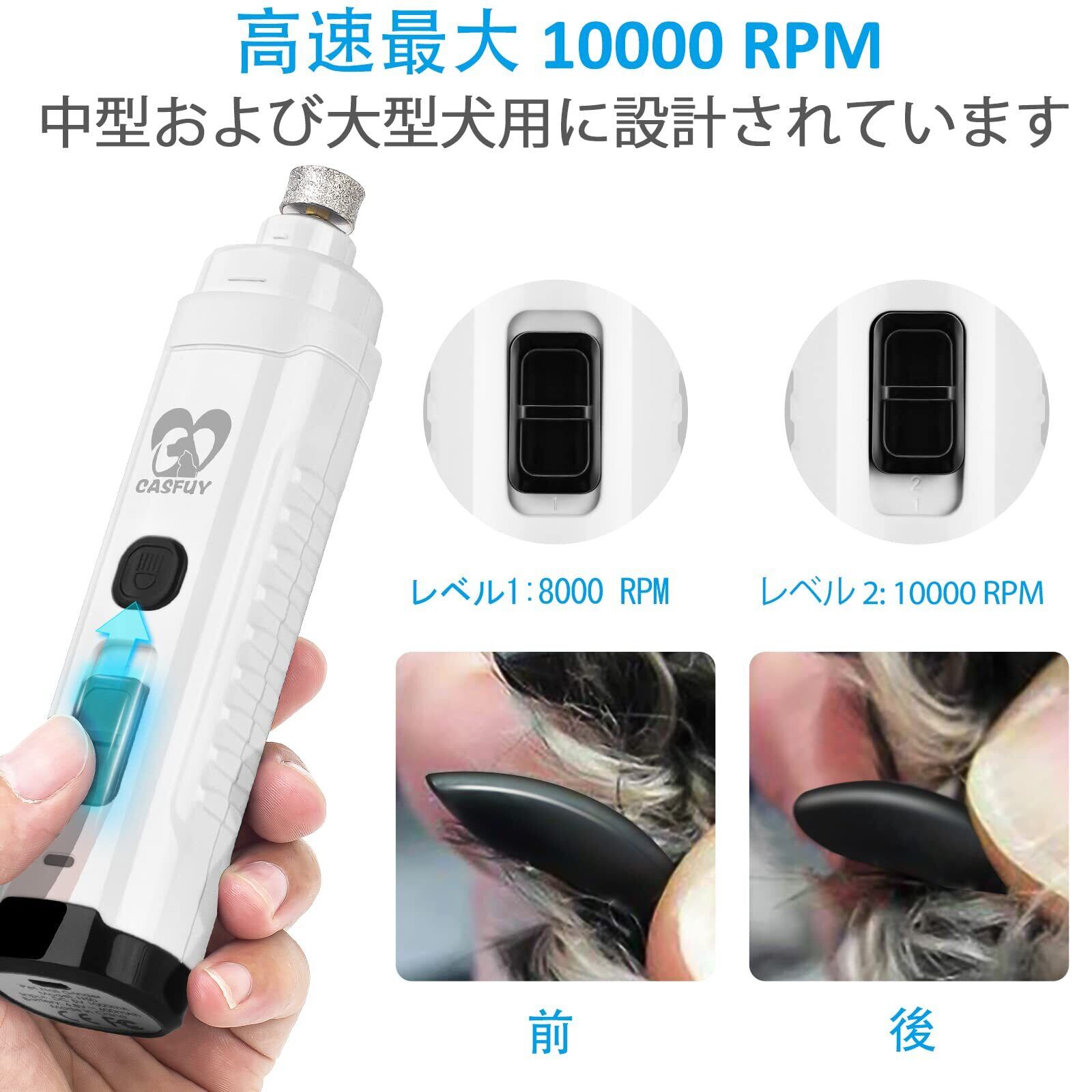 【在庫セール】Casfuy 大型中型犬用の2つのLEDライトを備えた犬の爪切り-3倍強力な2スピード電気ペットの爪切り充電式静かな痛みのない足グルーミング&スムージングツール(ホワイト)