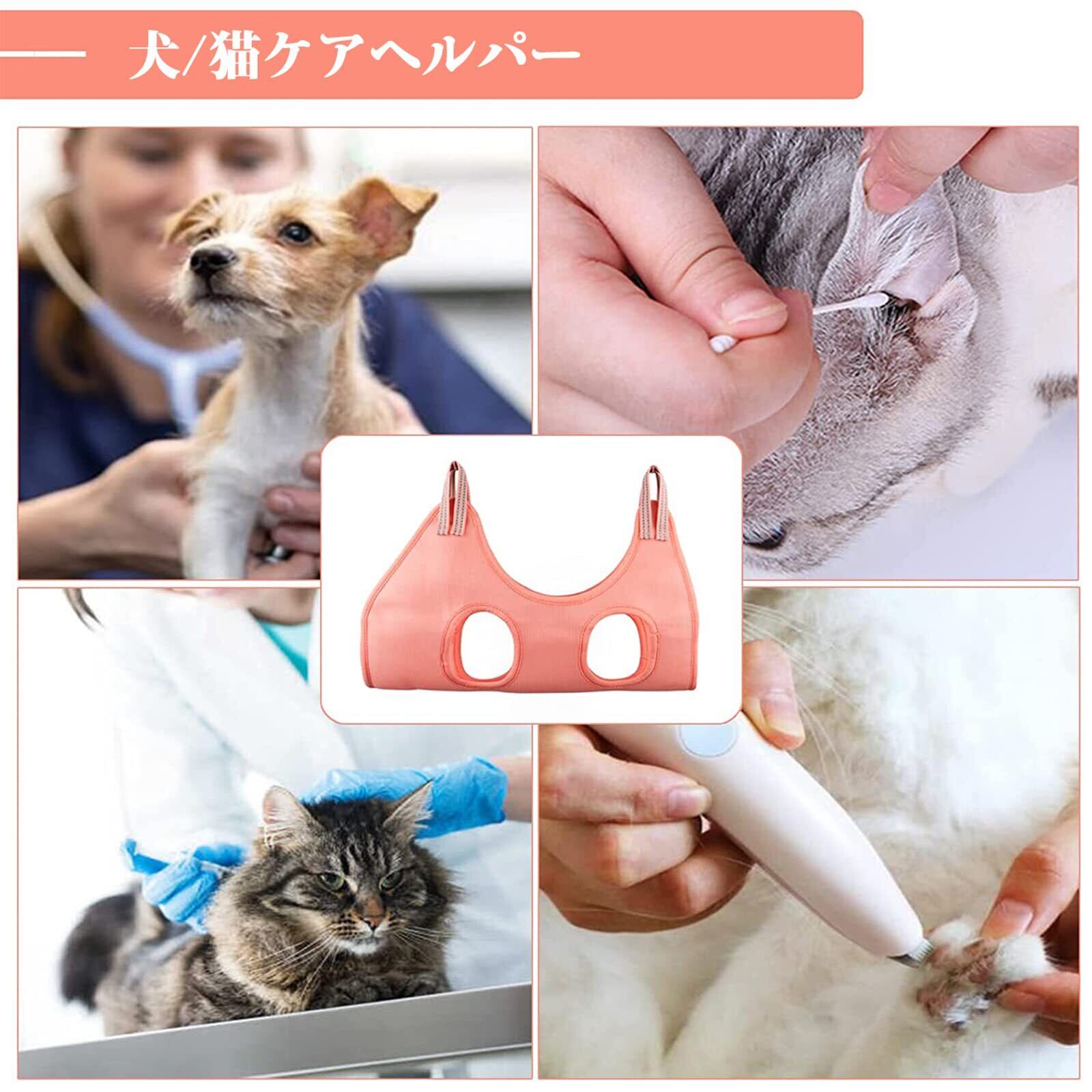 【商品の特徴】ペットの体を優しく包み込み、動きをうまく制限することで、自宅で安全にケアが行えます。無理に押さえつける必要がなく、ペットと飼い主の負担を軽減し、ストレスなくお世話ができます。