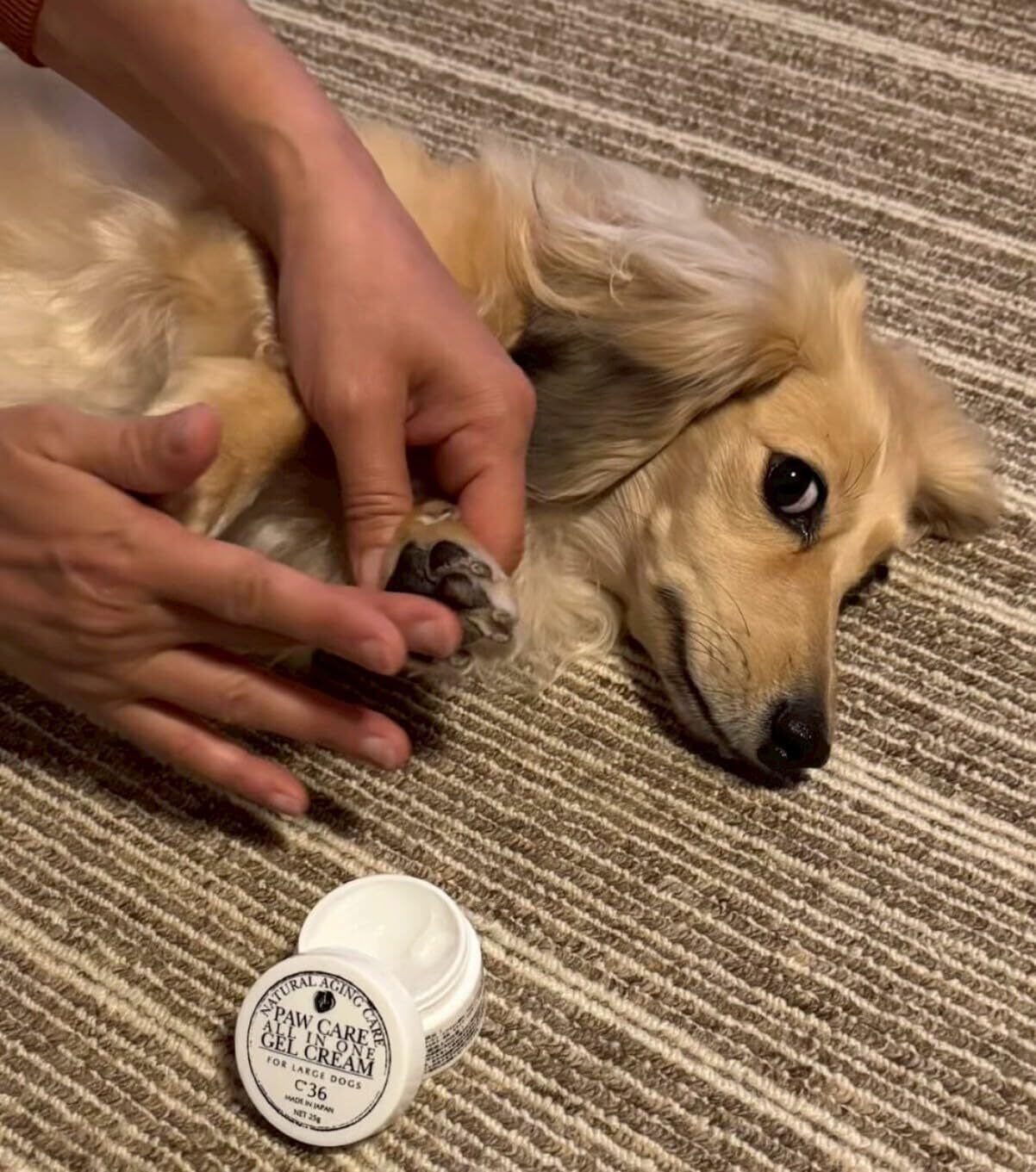 [Natural Aging Care Series]ナチュラルエイジングケア パウケアオールインワン ジェルクリームC35 /25g(滑り止め・保湿) 滑りやすく摩擦をうけやすい小型犬の肉球をダメージから守ります。 浸透力の高いジェルクリームが深部まで栄養を届け、天然保湿成分が滑り止め効果をもたらし、すばやく馴染んでべたつきません。 フラーレンやQ10などのエイジングケア成分をたっぷり配合、パピーのような柔らかな肌に。 天然成分配合・ノンシリコン・旧指定成分フリー・PEGフリー・ラウリル硫酸ナトリウムフリー・無鉱物油・無着色・無香料・アルコールフリー・パラベンフリーです。 【ご利用方法】真夏や真冬のお散歩は特に肉球への負担が増えます。お散歩後や、朝晩の肉球のお手入れに適量を塗り込んでください。 【使用上の注意】犬の皮膚に合わない場合はご使用をお止めください。使用後は必ずふたをして直射日光をさけて保管してください。極端に高温、または低温の場所で保管されますと変色や濁り等が生じることがありますが品質に問題はございません。乳幼児の手の届く場所には保管しないでください。