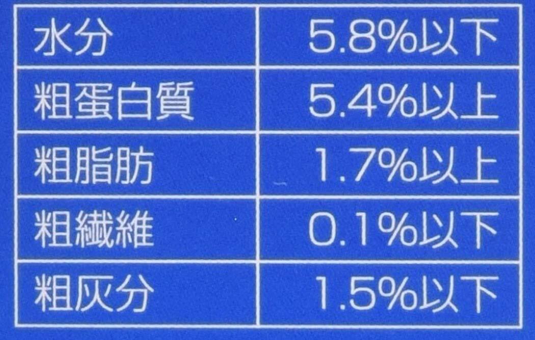 澱粉、脱脂粉乳、ショ糖、オリゴ糖、卵黄粉末(グロビゲンPG)、ポリグルタミン酸、フェカリス菌