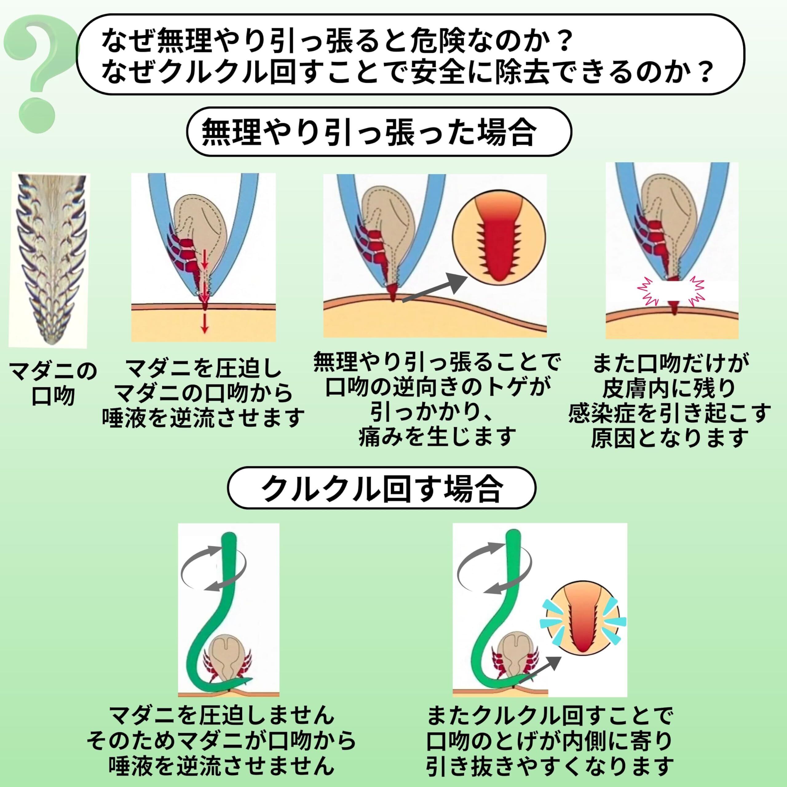 【特徴】マダニを潰さずクルクル回して取ることで、ダニの口吻を肌に残さず安全に除去できます。 *無理やりマダニをピンセットなどで引っ張るとダニの口吻が残りまた皮膚を傷つける事で感染症等を引き起こす原因になります。 .