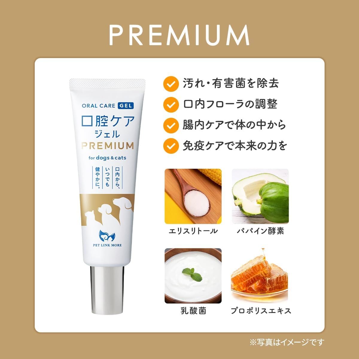 PETLINKMORE 犬猫用口腔ケアジェル【獣医師監修】舐めるだけ 歯磨き粉の代わり デンタルケア 口臭 国産 無添加 (PREMIUM 30g 単品)