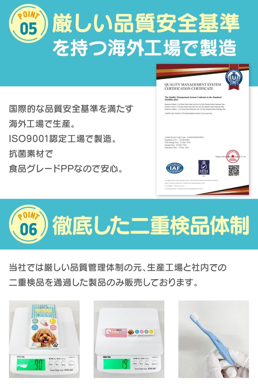 【徹底した二重検品体制】当社では厳しい品質管理体制の元、生産工場と社内での二重検品を通過した製品のみ販売しております。