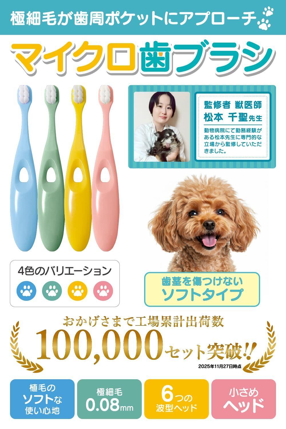 【獣医師監修】獣医師が推奨するわんちゃんのための小型犬用の歯ブラシが誕生しました。