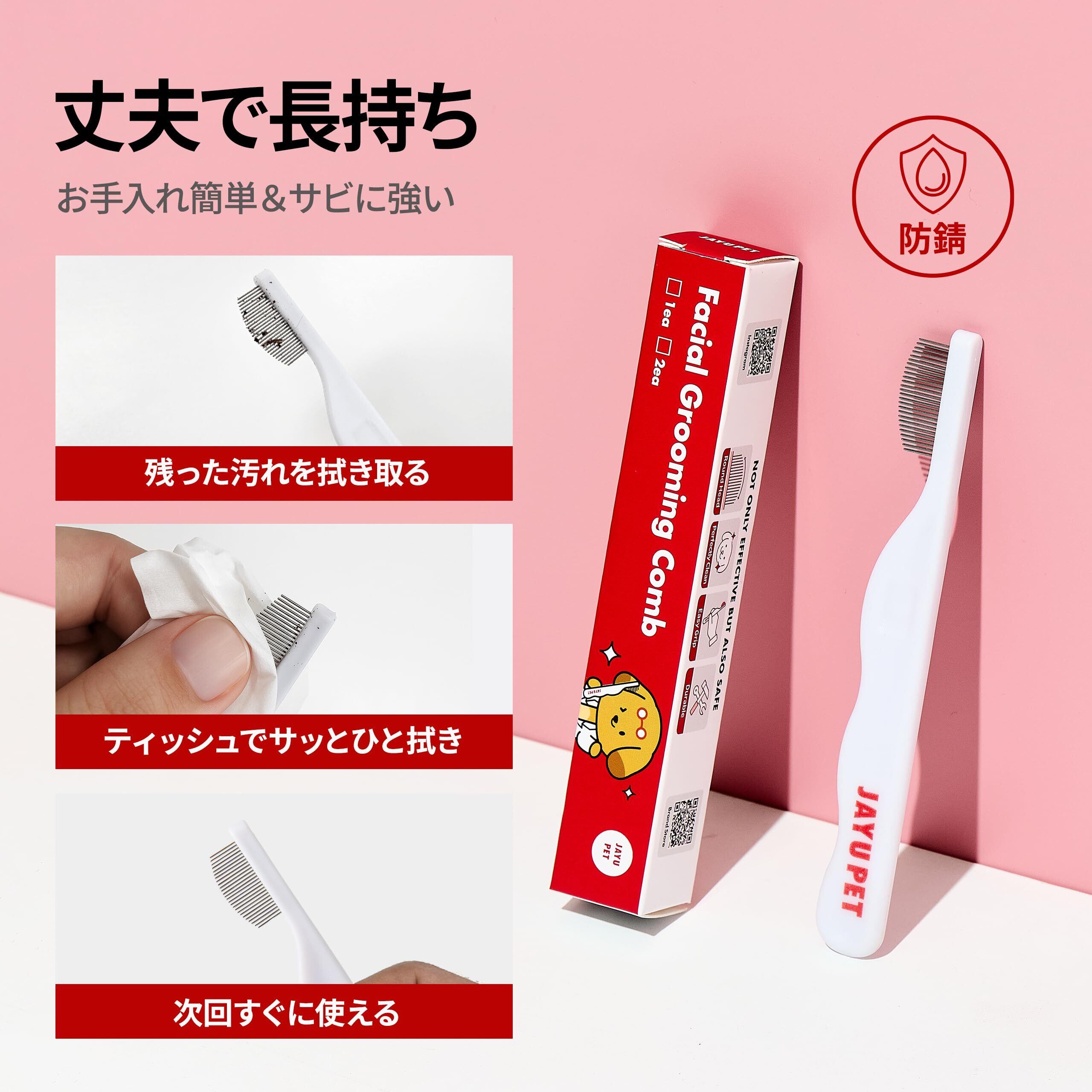 JAYU PET フェイシャル グルーミングコーム - 犬 猫用 アイコーム 涙やけ 目やに取り ストレスフリー フェイシャルブラシ ペット用 ケアブラシ グルーミングキット ステンレス製 抜け毛取りコーム