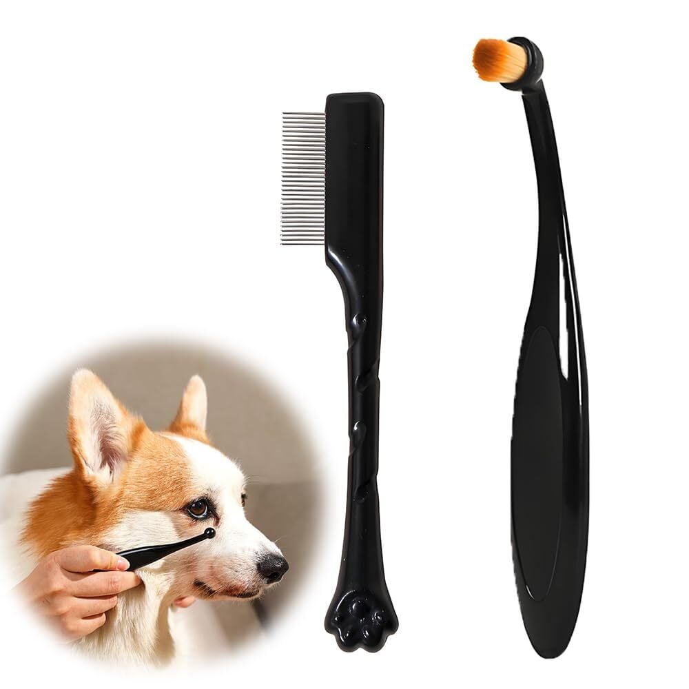 【犬猫兼用で便利な2点セット】顔周り用の細かいコームとパウダーブラシのセットです。毎日のお手入れから本格的な涙やけケアまで、一連のグルーミングを這一本で完了できます。長毛種・短毛種のどちらにもご使用いただけます。
