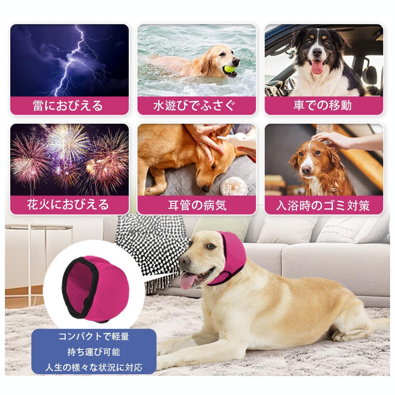 「雷・花火の音を軽減&不安ケア」 特殊3層クッション構造が騒音を最大30%カット(※自社試験)。耳を優しく包み込む設計で、敏感な犬の聴覚過敏やパニックを緩和します。